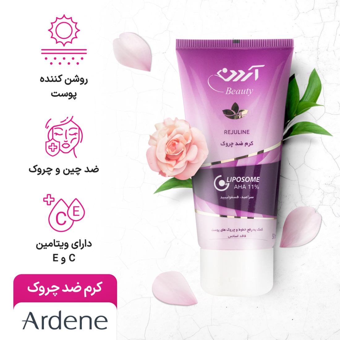 کرم ضد چروک لیپوزوم با آ اچ آ 11 درصد رجولاین آردن بیوتی آردنArdene Ardene Beauty Rejuline Liposome AHA 11 Anti Wrinkle Cream 50g