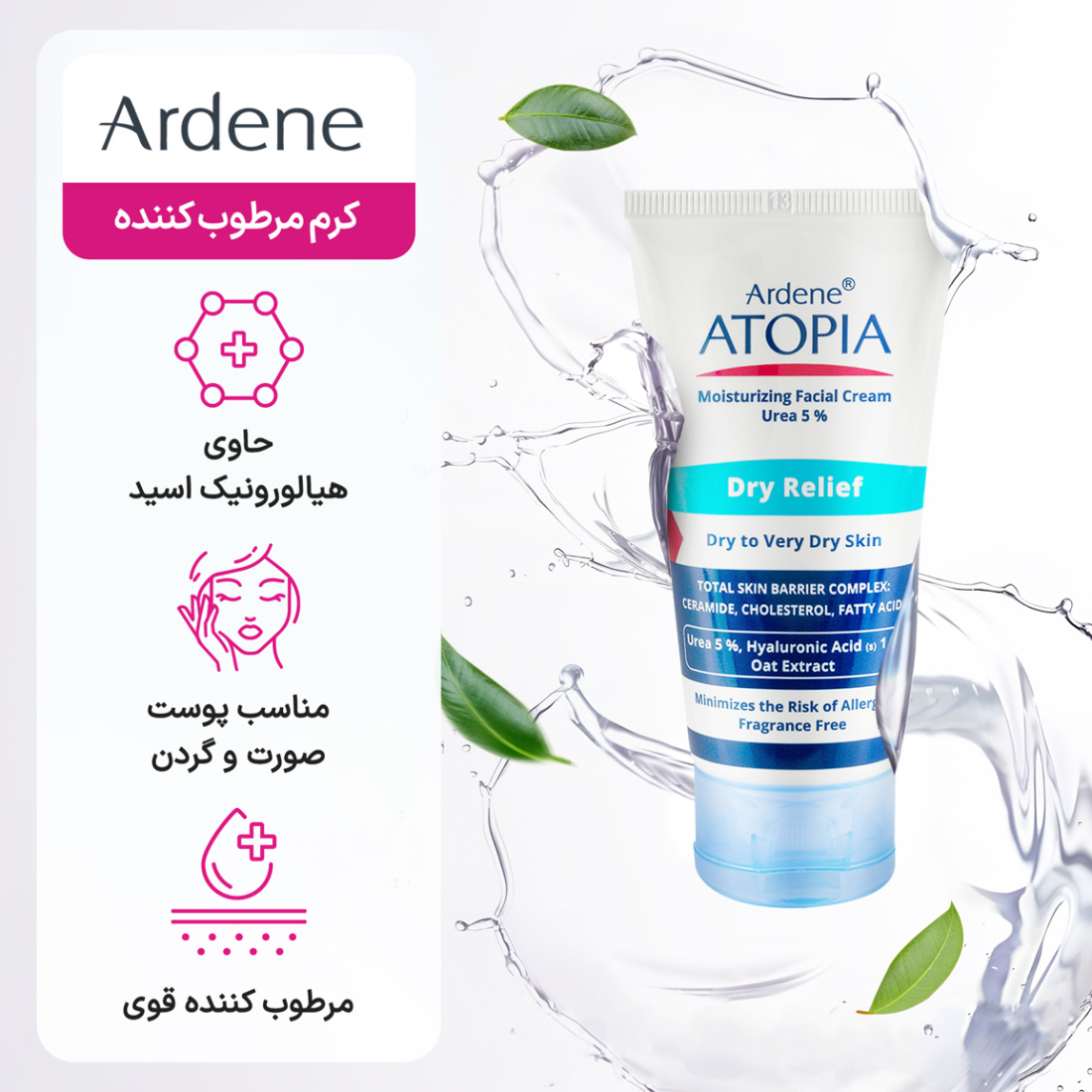 کرم مرطوب کننده قوی صورت مدل Dry Relief حجم 50 میلی لیترArdene Atopia Urea Moisturizing Facial Cream 50ml