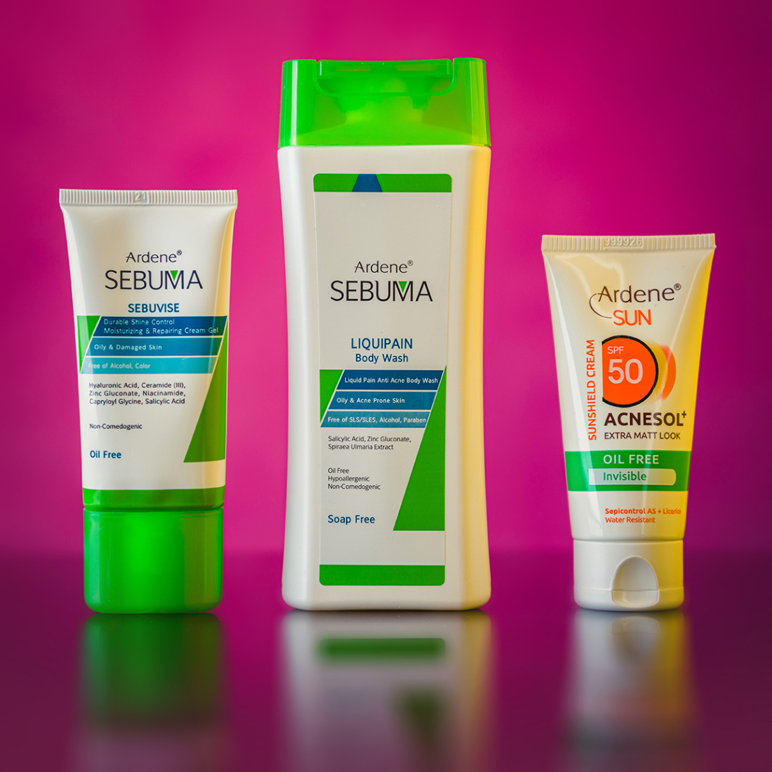 پک مراقبت کامل پوست چرب و مستعد آکنه سبوما آردن شامل شوینده، ضد آفتاب و کرم ژل مرطوبکننده