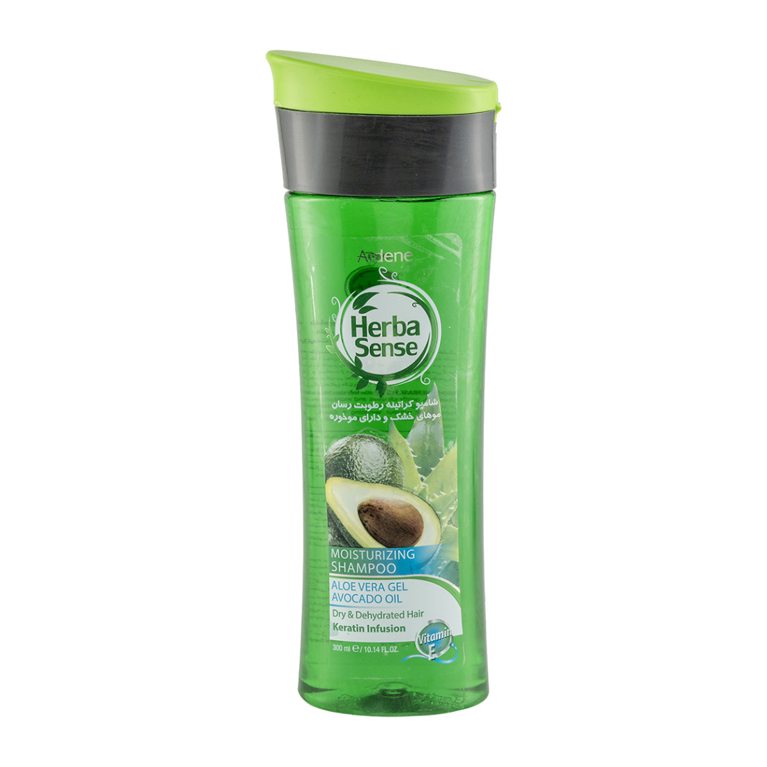 شامپو هرباسنس کراتینه رطوبترسان مو مخصوص موهای خشک و آسیبدیده با عصاره آلوئهورا و روغن آووکادو