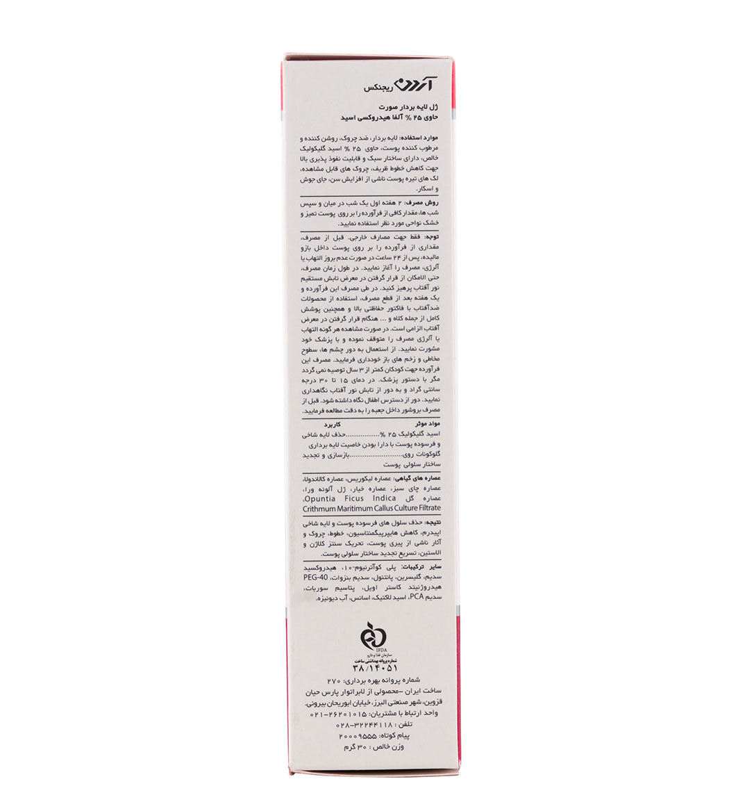 ترکیبات مؤثر ژل لایه‌بردار آ اچ آ 25 درصد ریجنکس آردن
