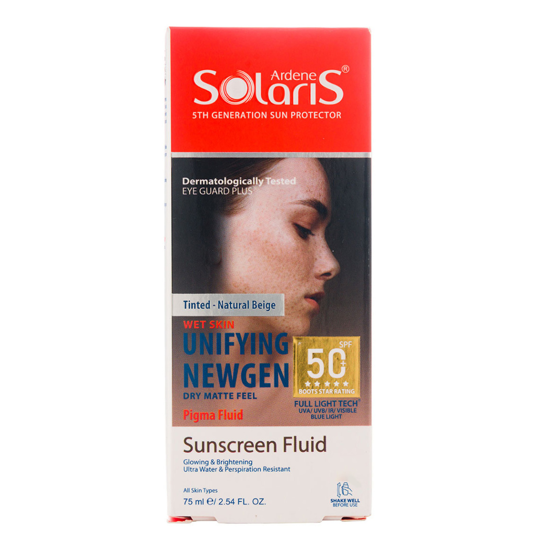 فلوئید ضد آفتاب رنگی آردن با SPF 50 حجم 75 میلی لیترArdene Solaris Unifying Newgen SPF 50 Sunscreen Fluid 75ml