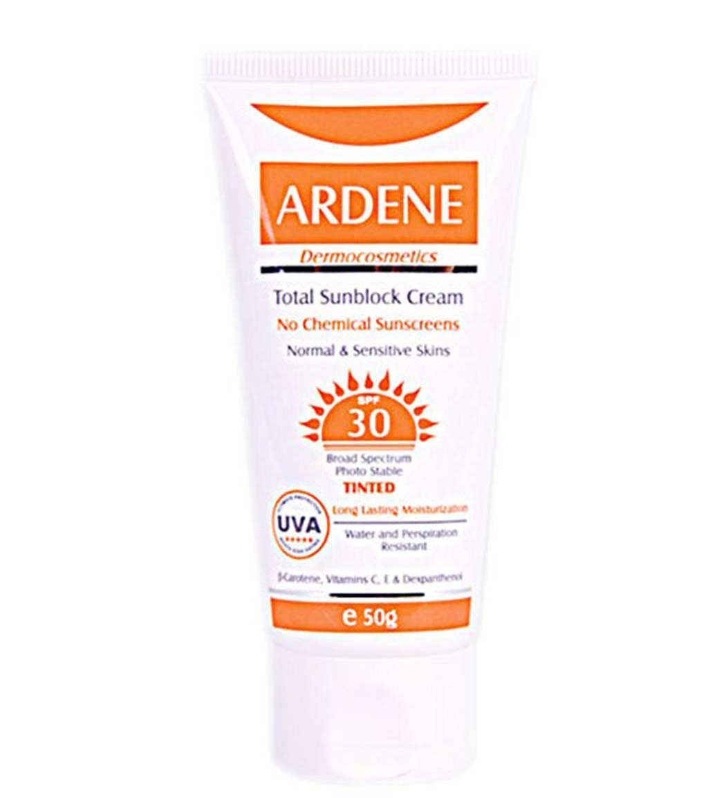 کرم ضد آفتاب رنگی آردن با SPF30 مناسب پوست نرمال و حساس حجم 50 گرمardene spf 30 no chemical tinted total sunblock cream