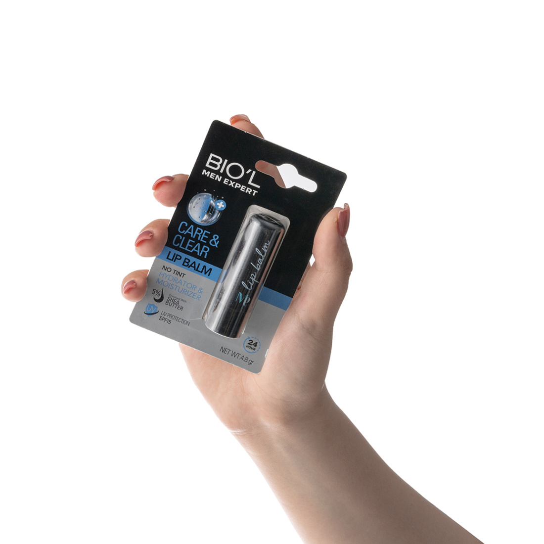 بالم لب بی رنگ بیول مدل Care And Clear با SPF15 مناسب آقایان وزن 4.8 گرمBiol Care And Clear Non Tinted Lip Balm For Men 4.8 g