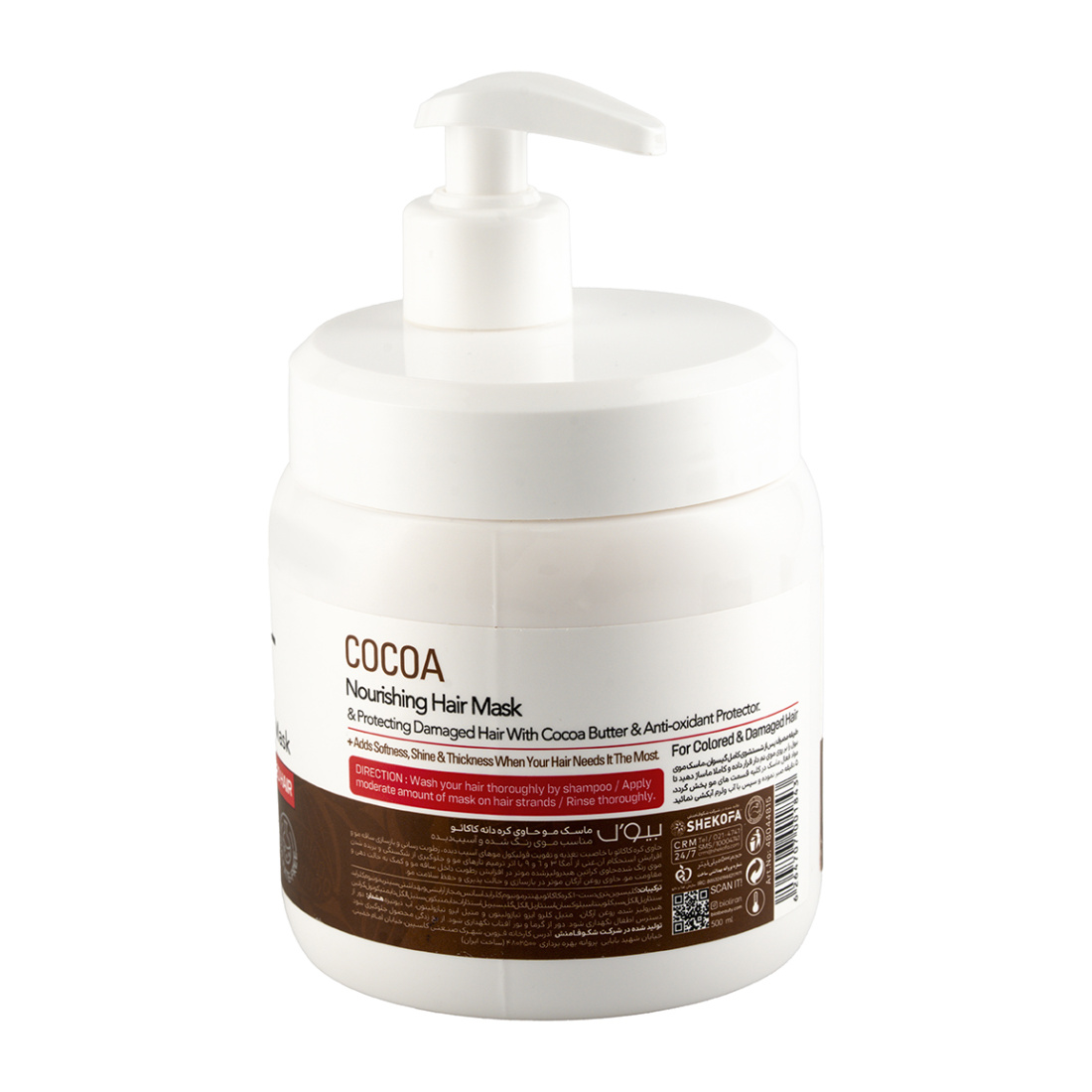کاکائو سرشار از آهن است که این ماده معدنی حیاتی نقش مهمی در پیشگیری از ریزش مو ایفا می‌کند. با استفاده منظم از ماسک موی کاکائو بیول، می‌توانید از کاهش میزان ریزش مو جلوگیری کرده و موهایی سالم‌تر و پرپشت‌تر داشته باشید. این محصول با حجم 500 میلی‌لیتر در بسته‌بندی پمپی عرضه شده که استفاده از آن را بسیار آسان و بهداشتی می‌سازد.