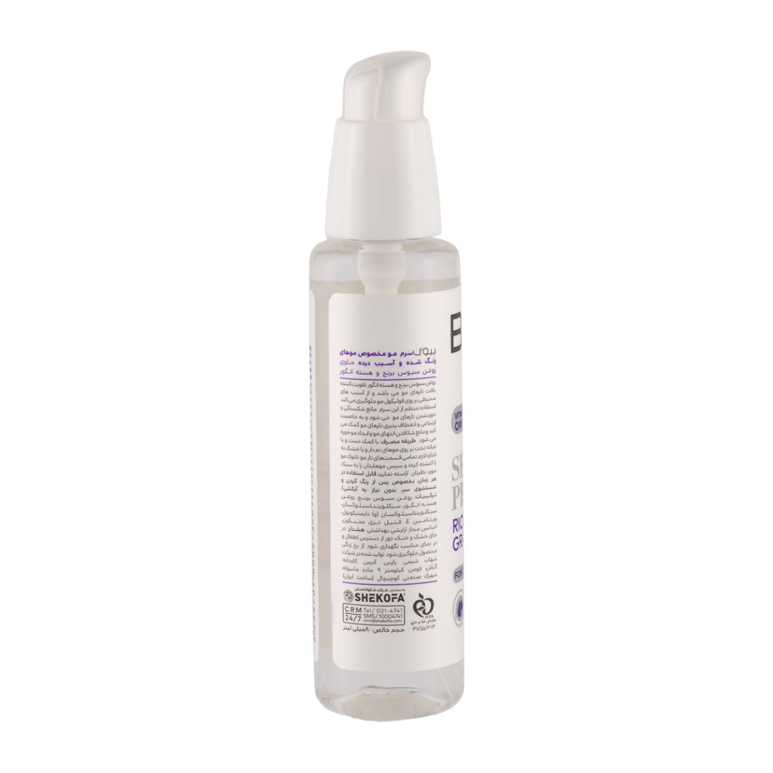این سرم تخصصی با فرمولاسیونی منحصر به فرد، به منظور بازسازی و تغذیه عمیق تارهای مو طراحی شده است. ترکیبات بی‌نظیر آن شامل روغن‌های طبیعی و مغذی مانند روغن بادام، هسته انگور و سبوس برنج است که هر کدام نقش مهمی در حفظ سلامت و زیبایی مو ایفا می‌کنند. این محصول مناسب برای انواع پوست سر بوده و به عنوان یک نرم‌کننده قوی، رطوبت لازم را به ساقه موها می‌رساند و از خشکی و شکنندگی آن‌ها جلوگیری می‌کند.  سرم بیول با ایجاد لایه‌ای محافظ روی موها، از آن‌ها در برابر آسیب‌های ناشی از حرارت مستقیم سشوار، اتوی مو و سایر عوامل محیطی محافظت می‌نماید. استفاده مداوم از این سرم باعث افزایش استحکام و انعطاف‌پذیری موها شده و لطافت و درخششی مرواریدگونه به آن‌ها می‌بخشد که جلوه‌ای طبیعی و سالم به موهای شما می‌دهد.
