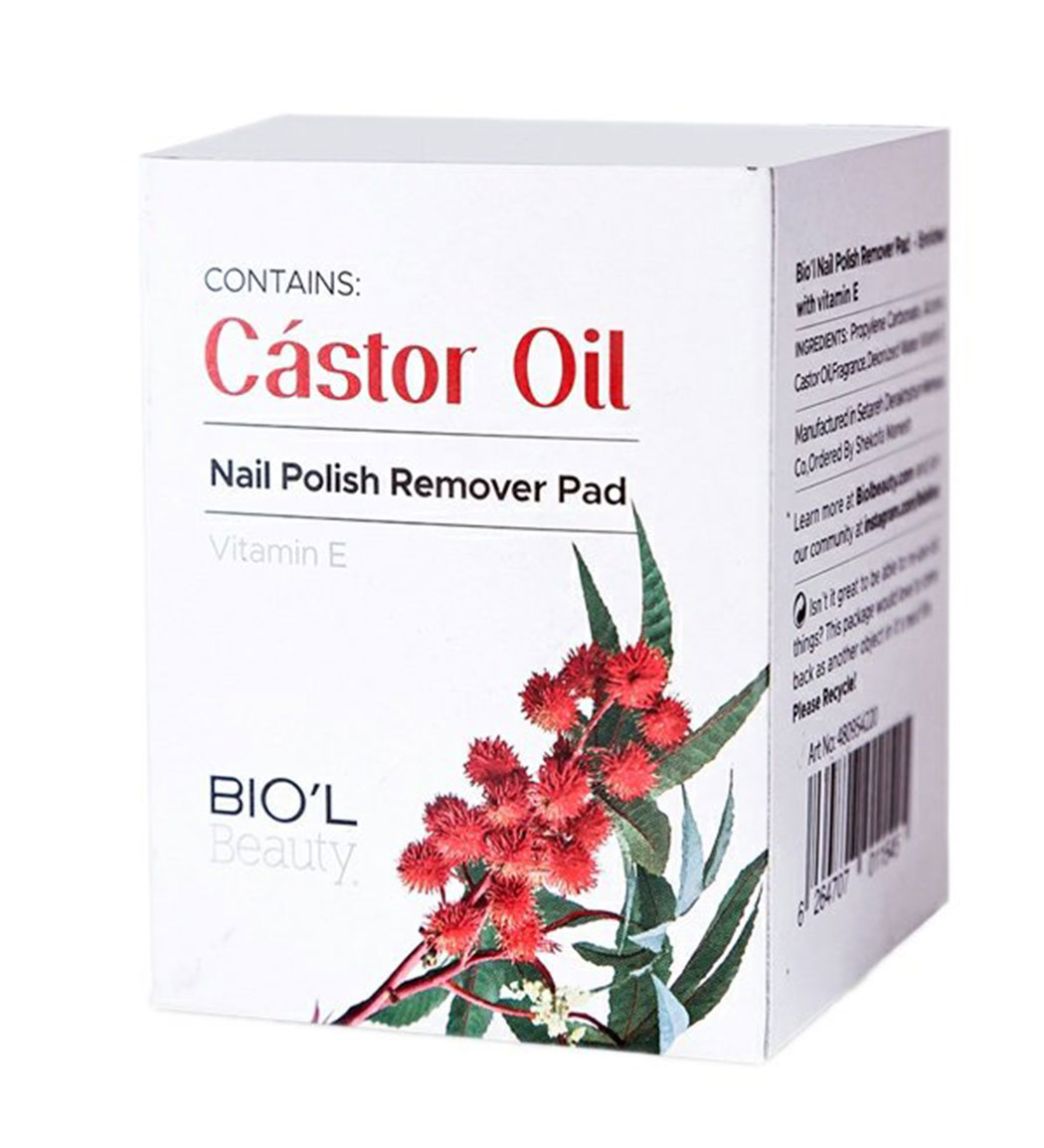 دستمال پاک کننده لاک بیول حاوی روغن کرچک و ویتامین E، پاک‌کننده‌ای موثر و ملایم بدون استون برای ناخن‌ها.