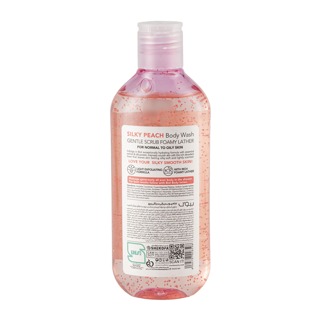 شامپو بدن ژلی سیلکی پیچ حاوی اسکراب بیول حجم 400 میلی لیترBiol Silky Peach Gel Body Wash With Scrub 400 ml