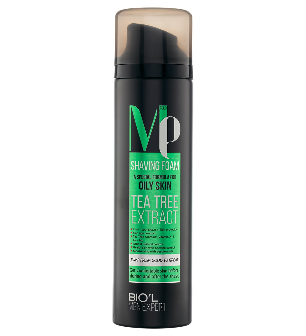 فوم اصلاح مردانه با عصاره درخت چای بیول، مناسب پوست چرب و دارای خواص ضد باکتری و مرطوب‌کننده است.