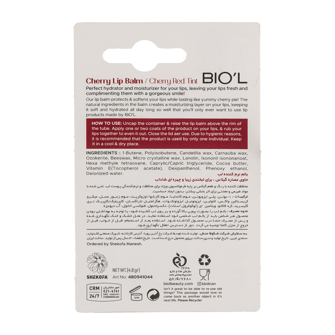 مشخصات کلیBiol Tinted Cherry Lip Balm 4.8 g