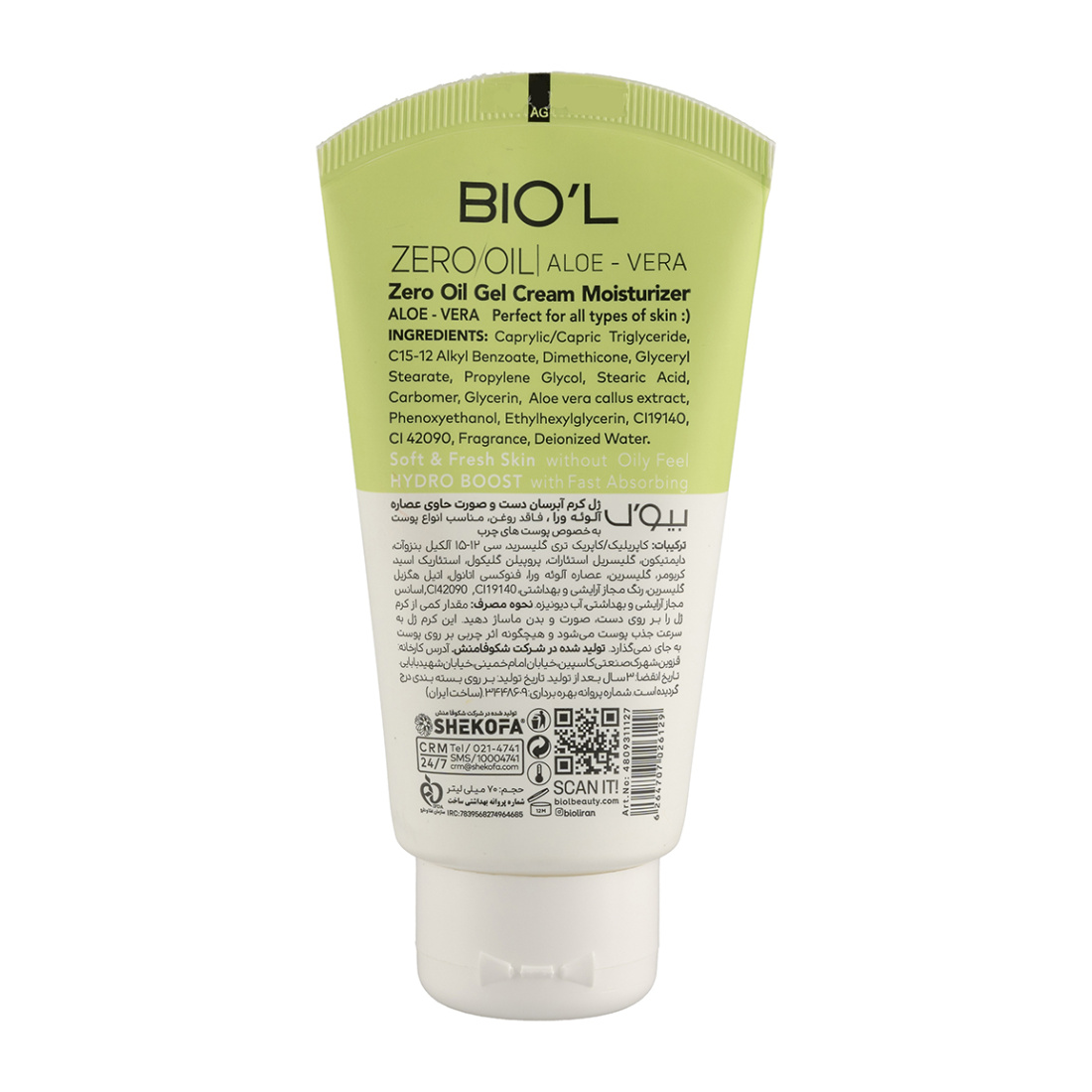 ژل کرم مرطوبکننده بیول با عصاره آلوئه ورا برای دست و صورت