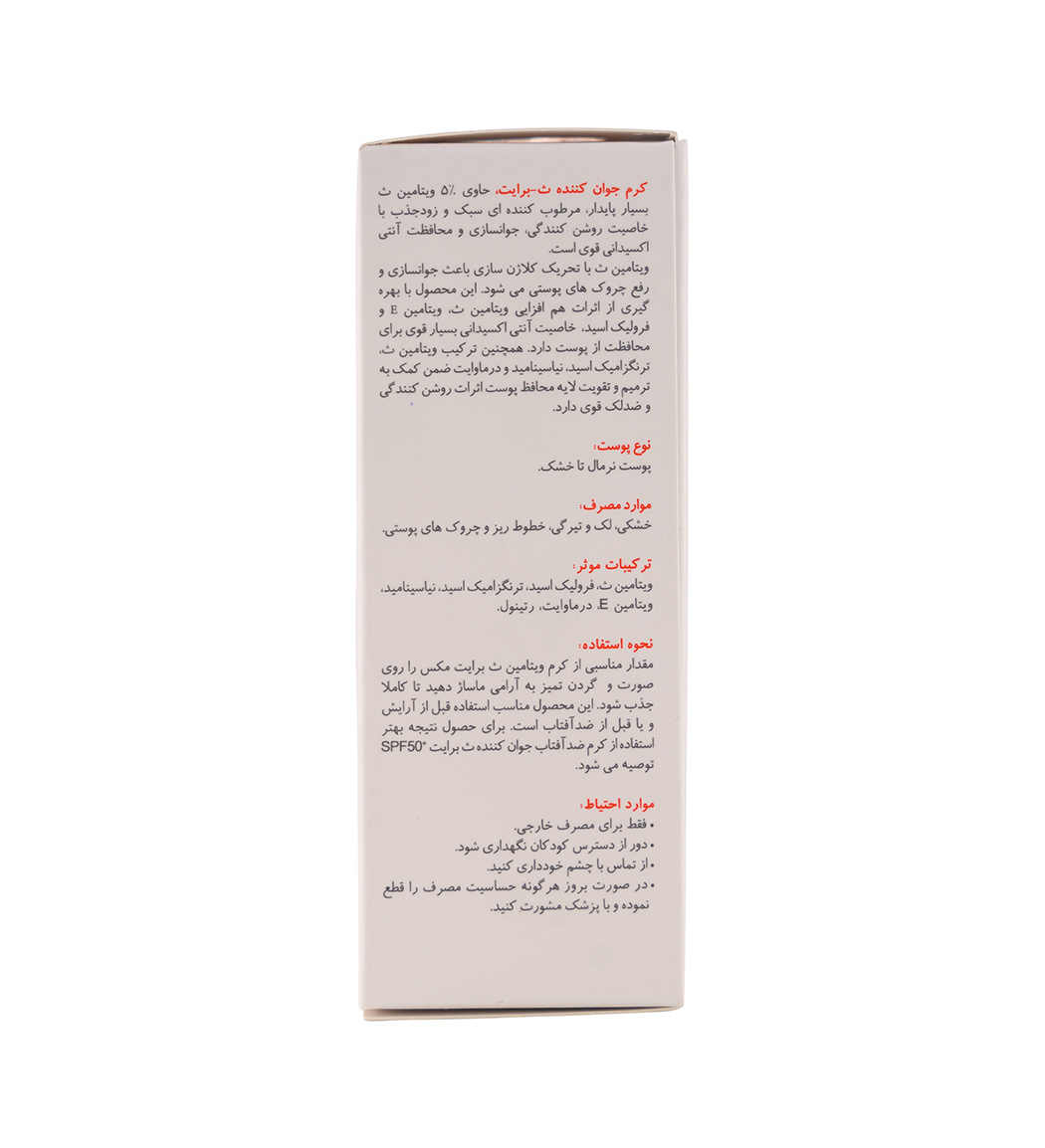 کرم جوان کننده پوست حاوی ویتامین ث برایت مکس با خاصیت آبرسانی و افزایش خاصیت ارتجاعی پوست مناسب پوست‌های نرمال تا خشک.