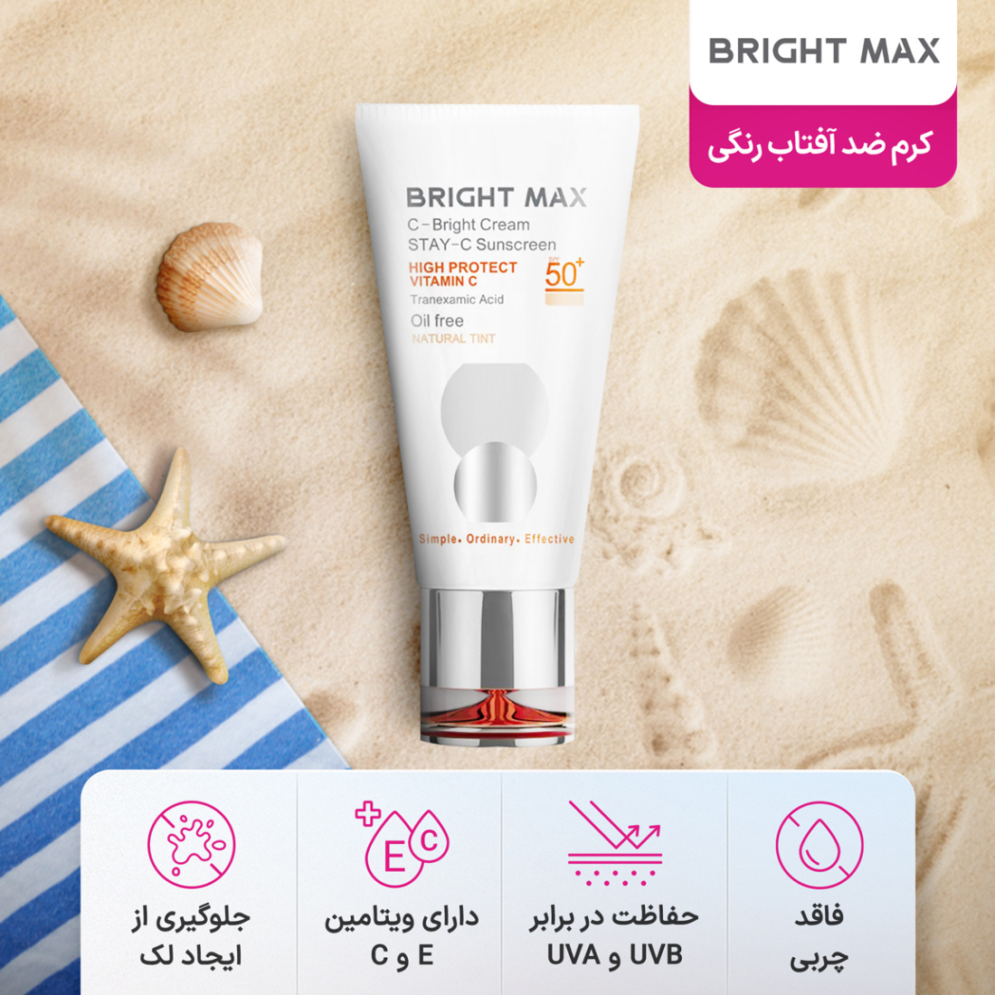 کرم ضد آفتاب رنگی برایت مکس دارای SPF50 حاوی ویتامین C حجم 50 میلی لیترBright Max C Sunscreen 50 ml