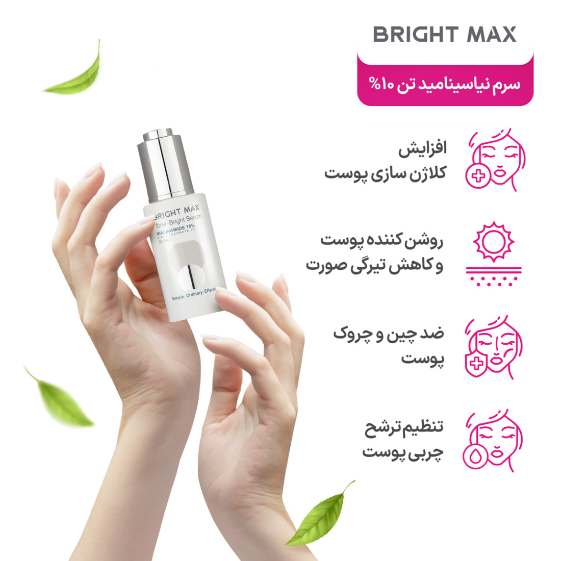 ویژگیها و مزایای کلیدی سرم نیاسینامید تن برایت مکس