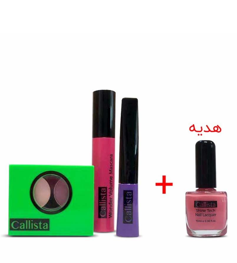 پک آرایشی کالیستا شامل پالت سایه، ریمل، خط چشم و لاک با کیفیت بالا و ماندگاری طولانی است.