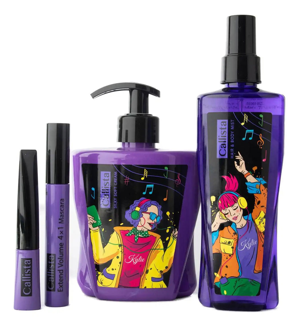 مجموعه مراقبت بدن مدل Purple کالیستا شامل محصولات متنوع برای زیبایی و مراقبت کامل پوست و آرایش چشم است.