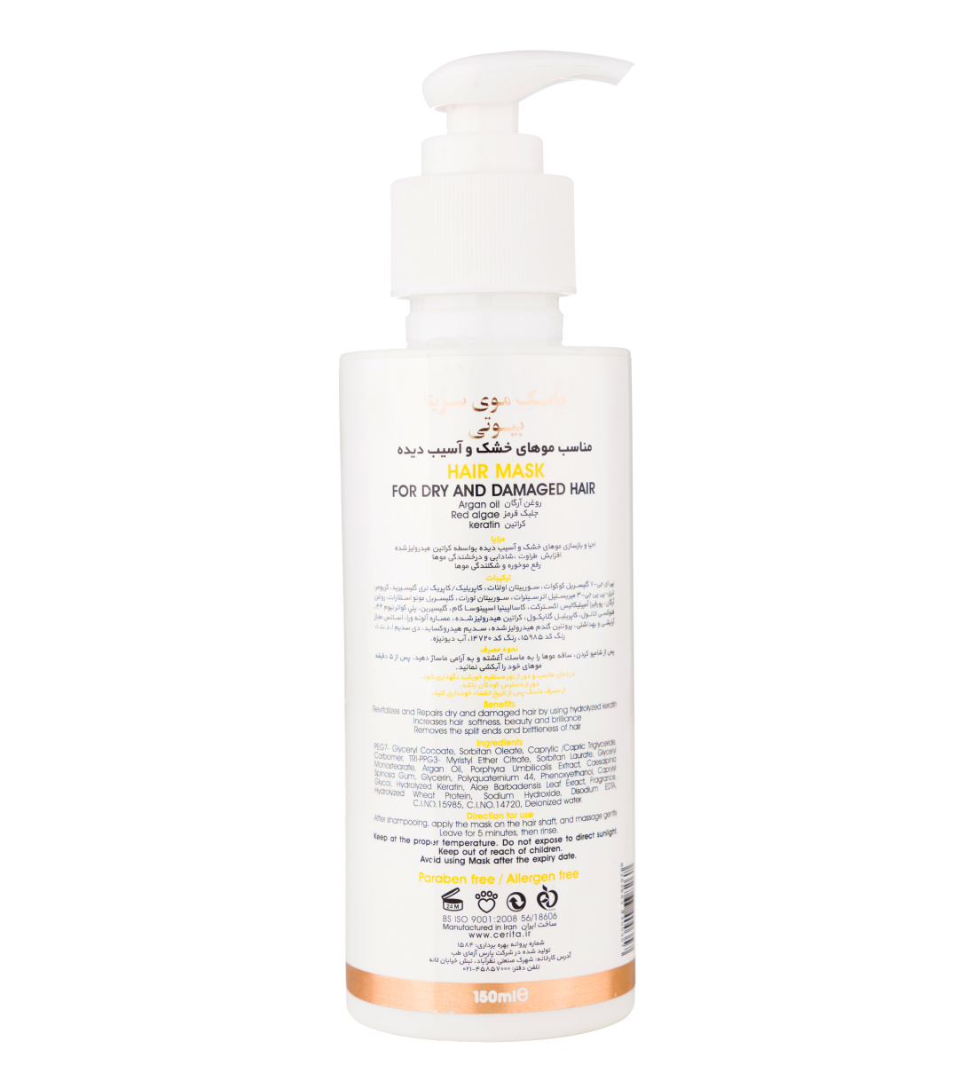مشخصات کلیCerita Beauty Hair Mask For Dry And Damaged Hair 150g