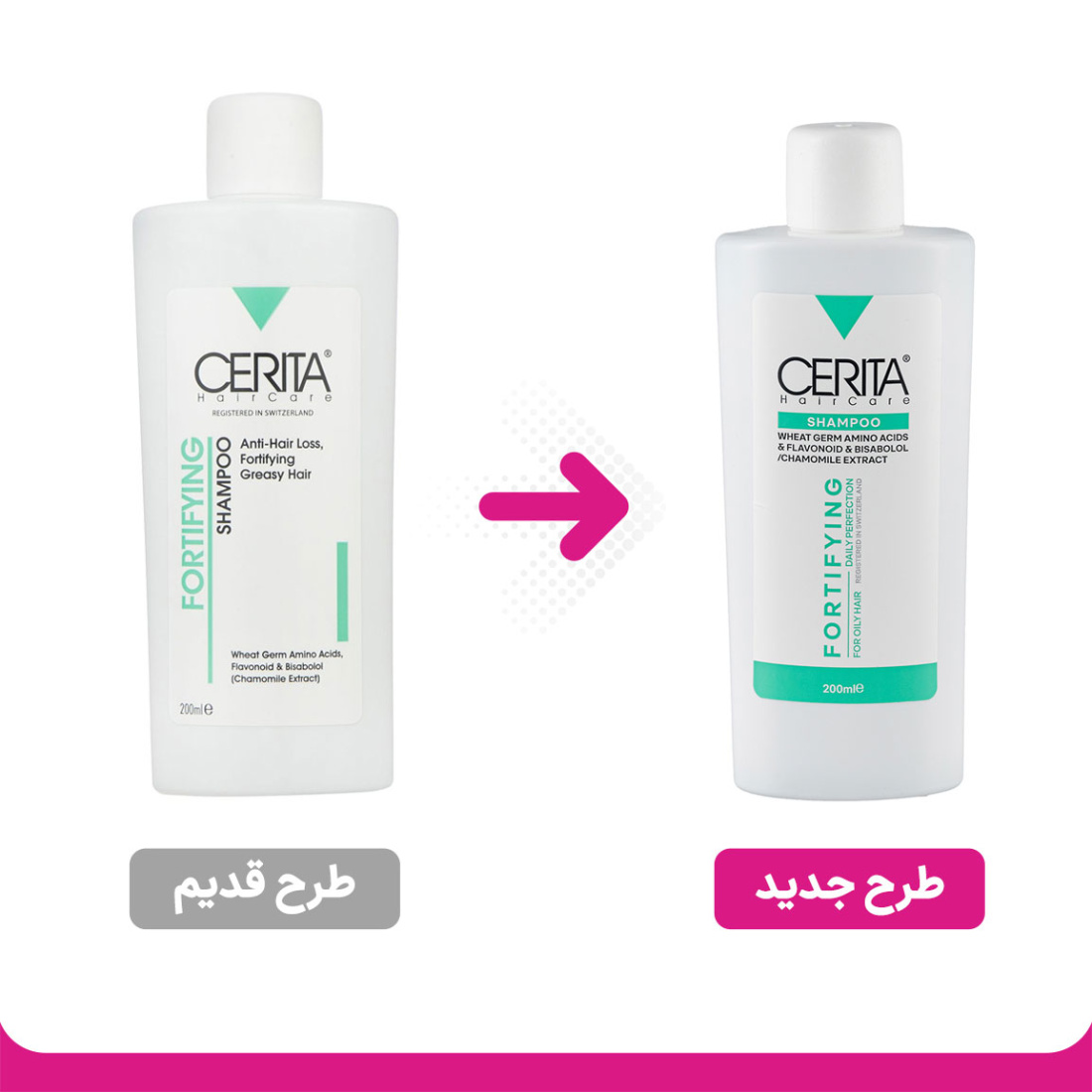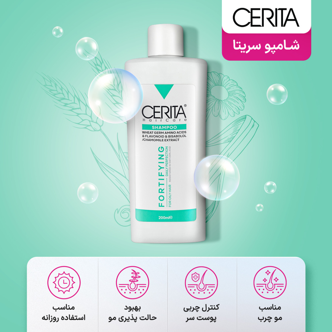 شامپو مو سریتا مدل تقویت کننده و ضد ریزش مناسب موهای چرب حجم 200 میلی لیترCerita Fortifying Anti Hair Loss Shampoo greasy hair with wheat germ