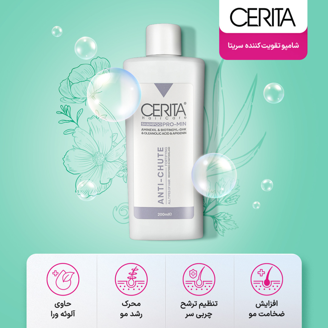 شامپو تقویتکننده موی پرومین سریتا با فرمولاسیون تخصصی ضدریزش و تقویت ریشه مو