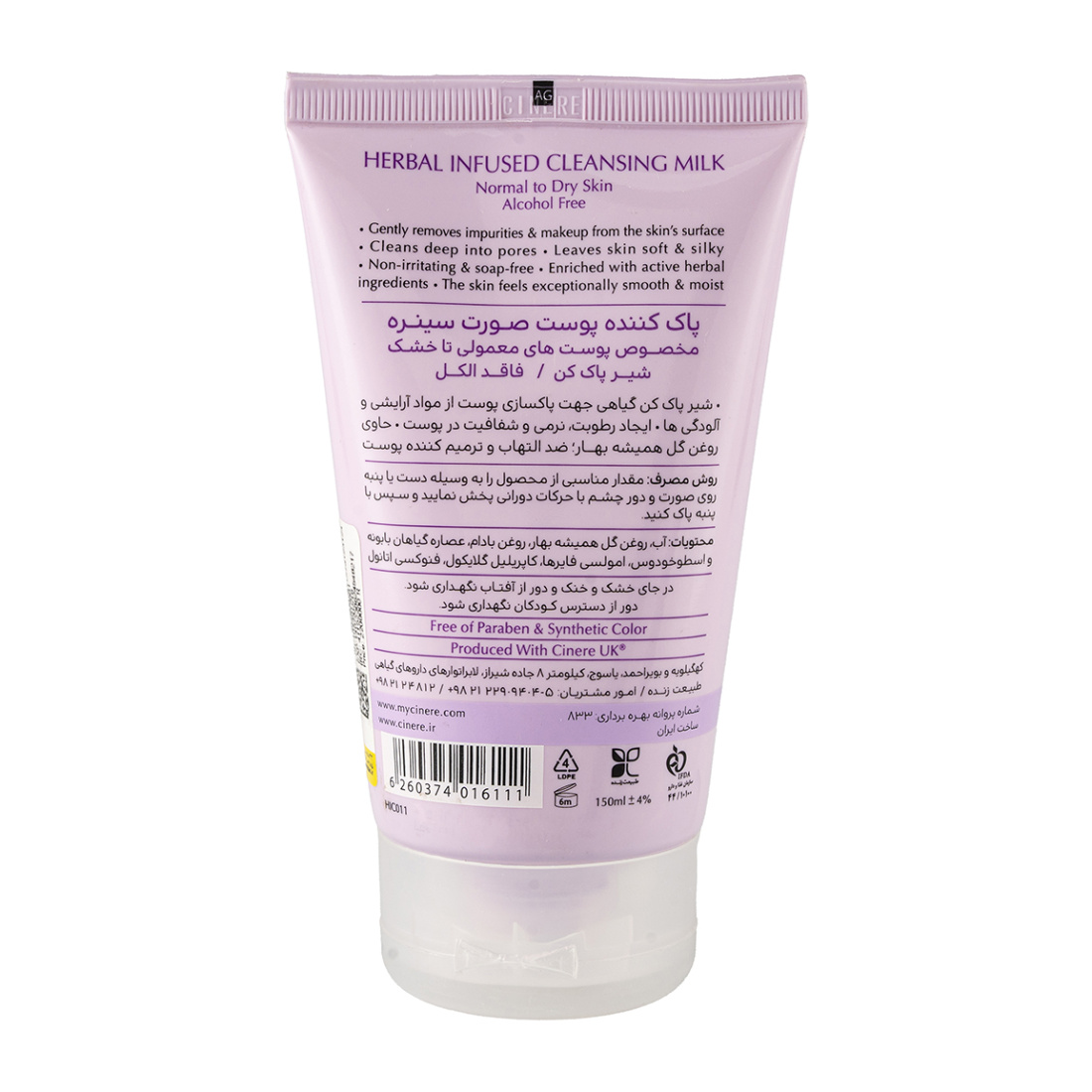 این محصول فاقد الکل و مواد صابونی است که باعث میشود پوست پس از استفاده دچار خشکی یا تحریک نشود. همچنین در فرایند تولید آن هیچ گونه تست حیوانی انجام نشده است که این امر نشاندهنده تعهد برند سینره به حفظ حقوق حیوانات و محیط زیست است. شیر پاک کن سینره با حجم 150 میلیلیتر، گزینهای مقرون به صرفه و با کیفیت برای مراقبت روزانه پوست شما میباشد.
