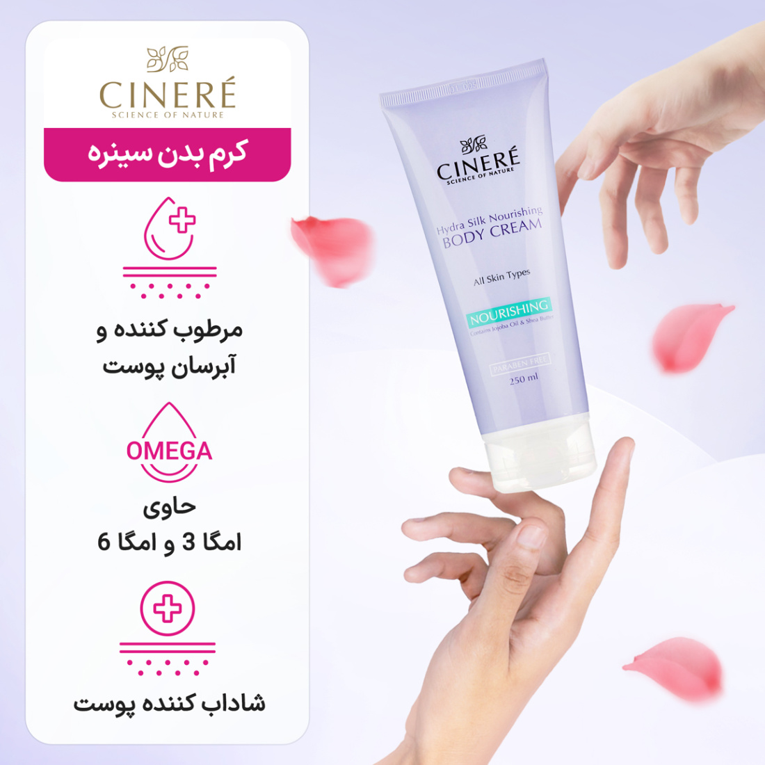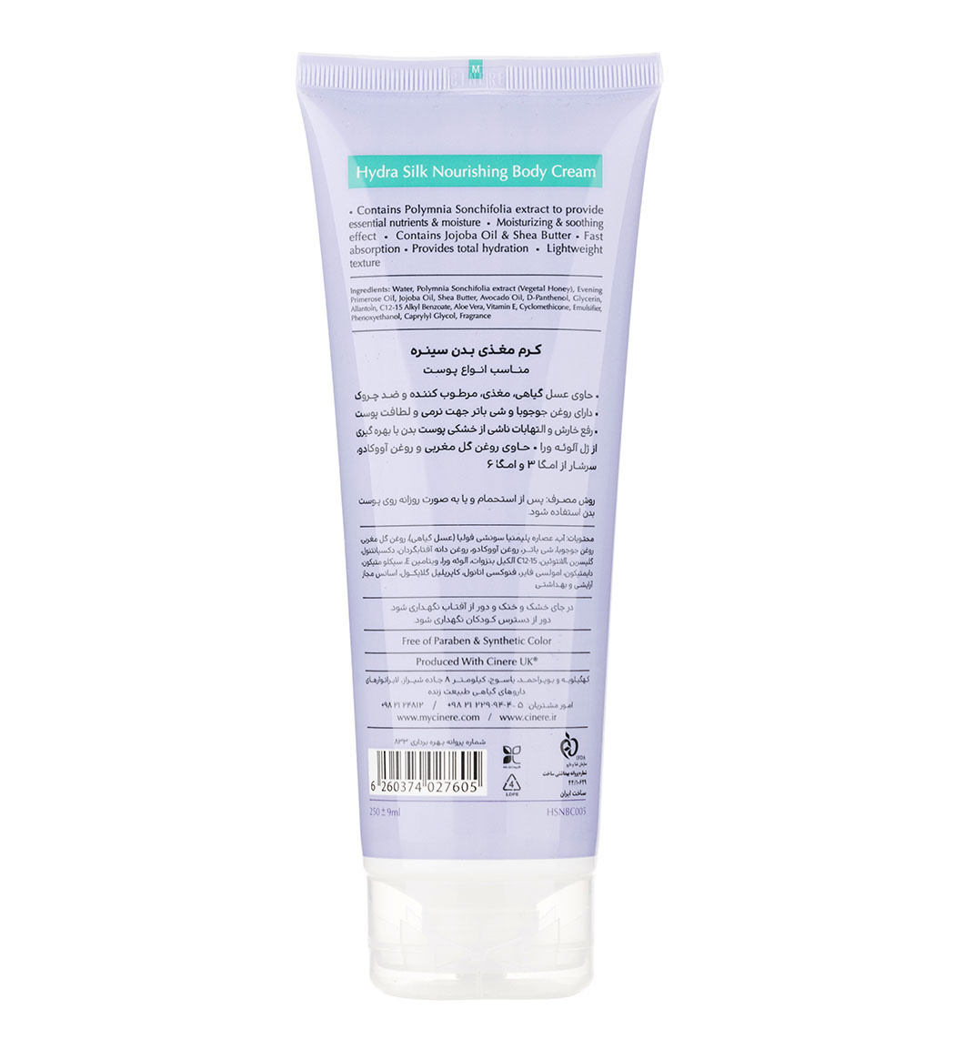 ترکیبات طبیعی و موثر کرم بدن مغذی سینره برای تغذیه و محافظت پوست