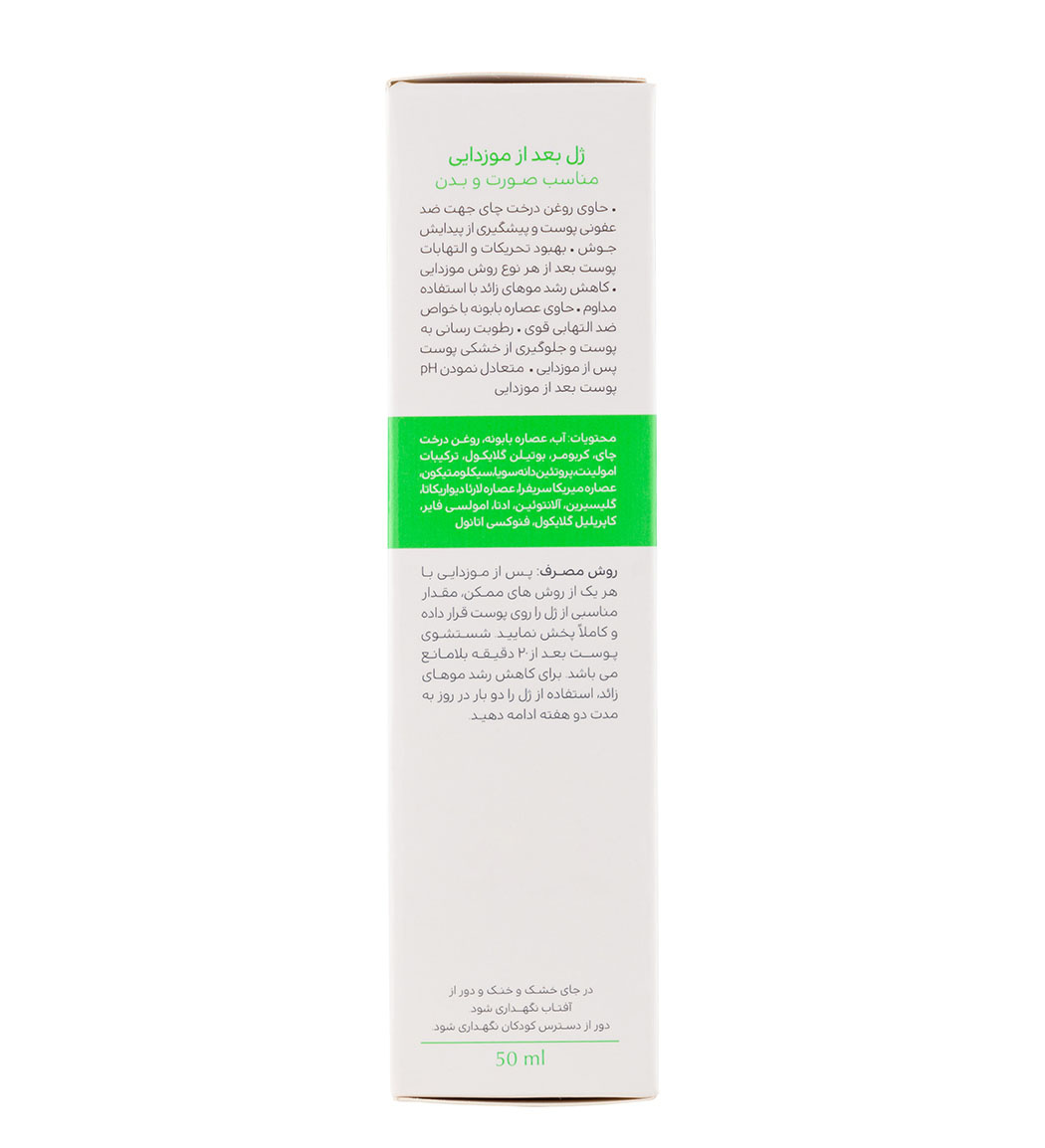پس از هر بار اصلاح صورت یا بدن با هر روشی که انجام می‌دهید، مقدار مناسبی از ژل را برداشته و به آرامی روی پوست خود پخش کنید تا کاملاً جذب شود. برای دستیابی به نتایج بهتر و کاهش رشد موهای زائد، توصیه می‌شود این فرآیند را دو بار در روز و به مدت دو هفته ادامه دهید. این روش استفاده منظم به تسکین سریع‌تر پوست و بهبود قابل توجهی در وضعیت آن کمک می‌کند.
