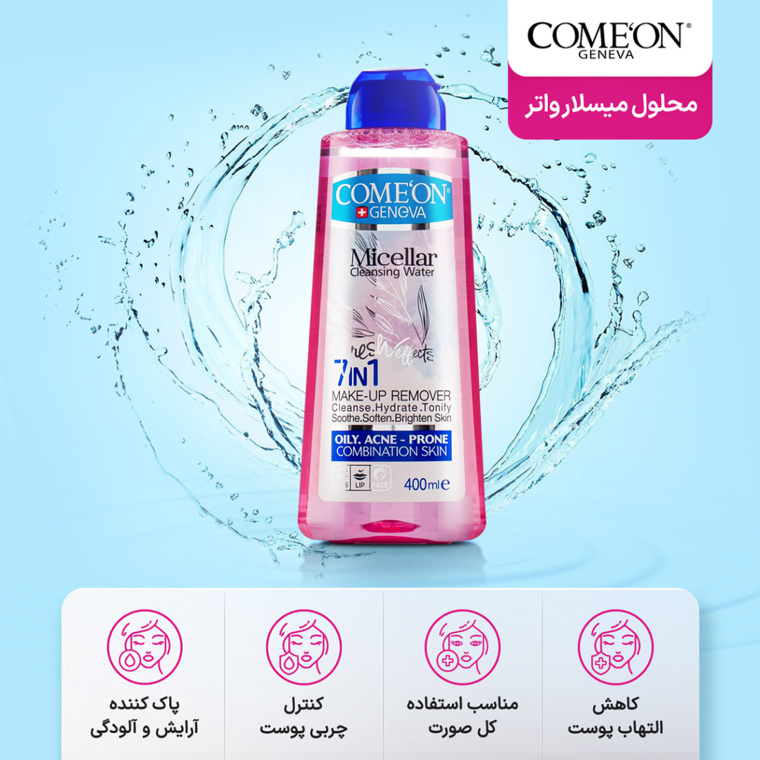 مشخصات کلیComeon 7in1 Micellar Cleansing Water For Oily And Acne Combination Skin 400ml