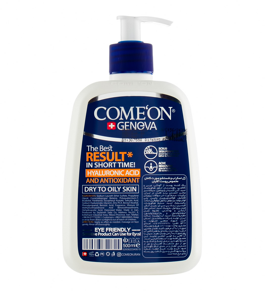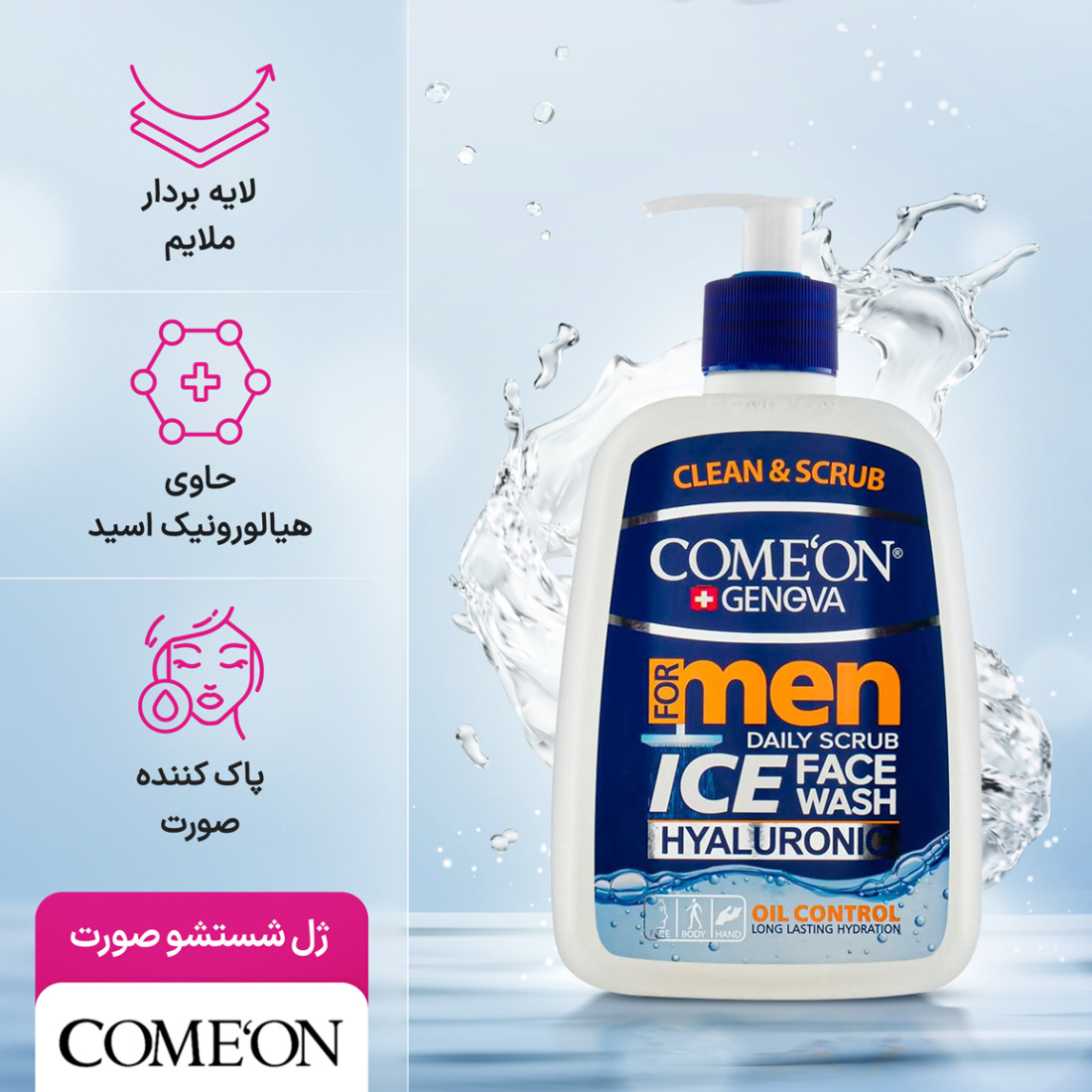 فیس واش و اسکراب کامان مدل Ice مناسب آقایان حجم 500 میلی لیترComeon Face Wash For Men 500ml