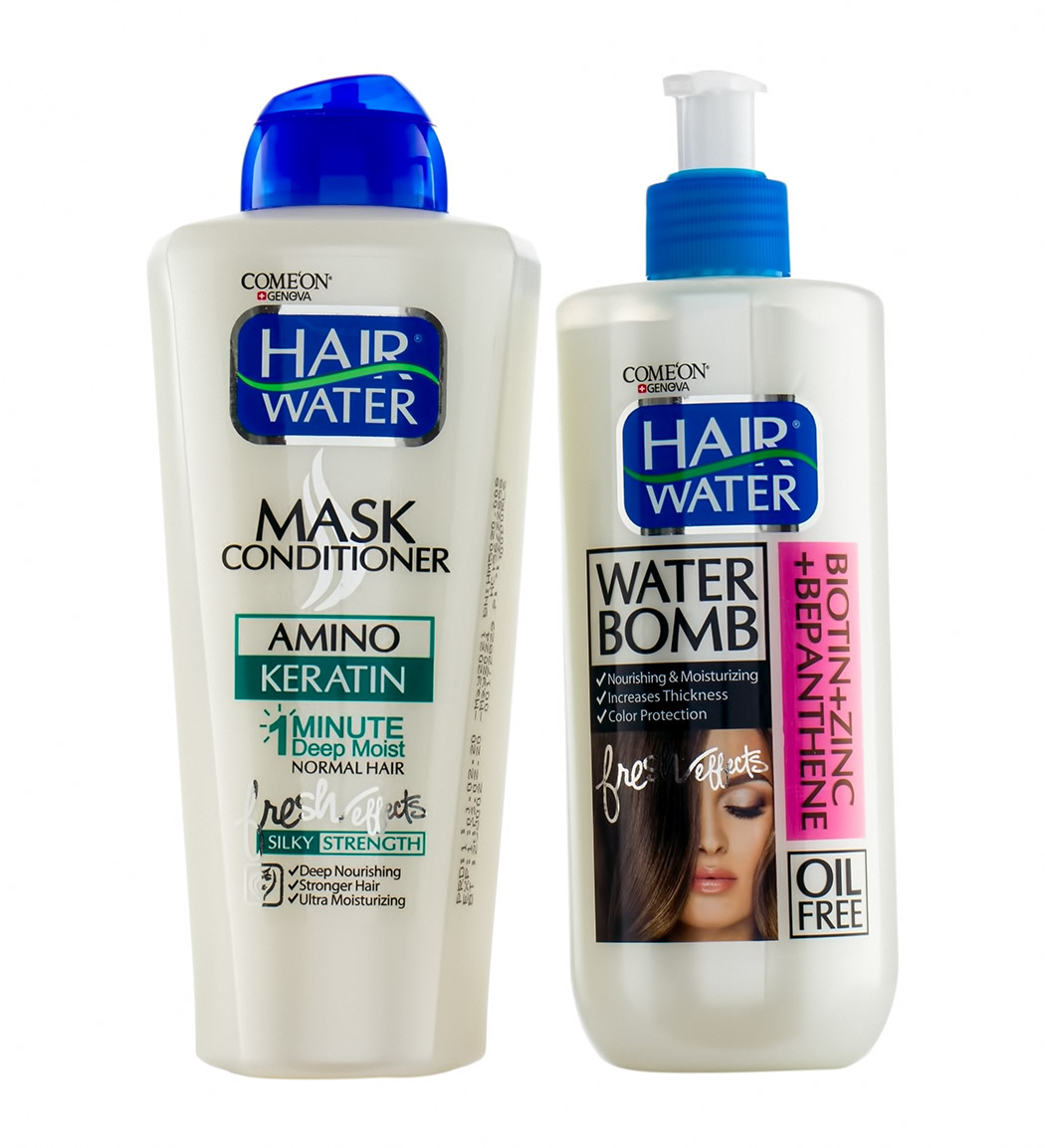 پک واتربمب مو و ماسک مو هیرواتر کامانComeon Keratin Hair Mask 400ml And Bio Ten Hair Water 400ml