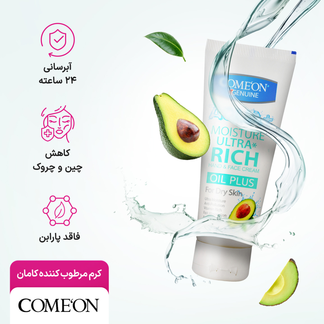کرم مرطوب کننده پوست خشک کامان با فرمولاسیون تخصصی برای آبرسانی و تغذیه عمیق پوست