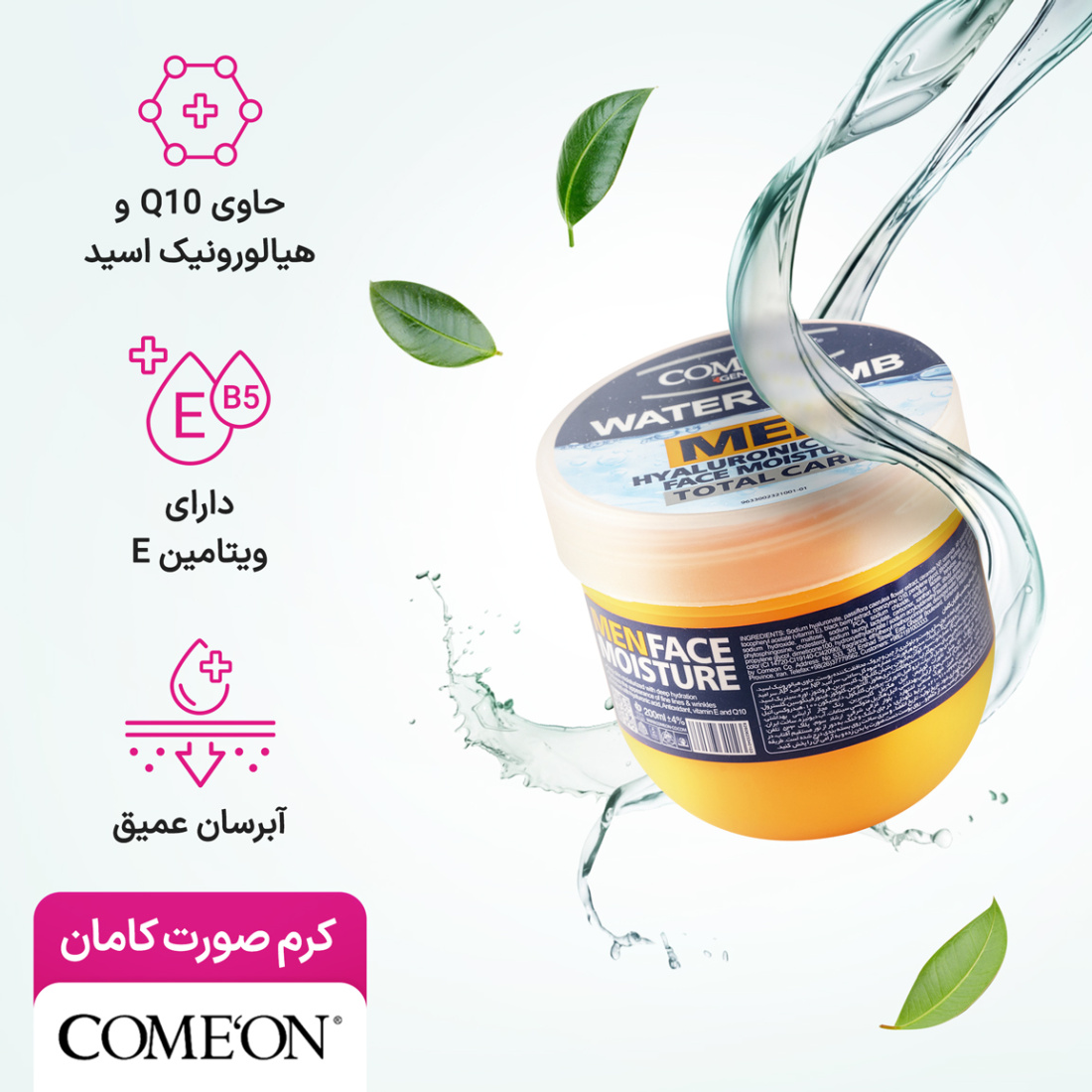 مشخصات کلیComeon Water Bomb Face Cream With Hyaluronic Acid For Men 200ml
