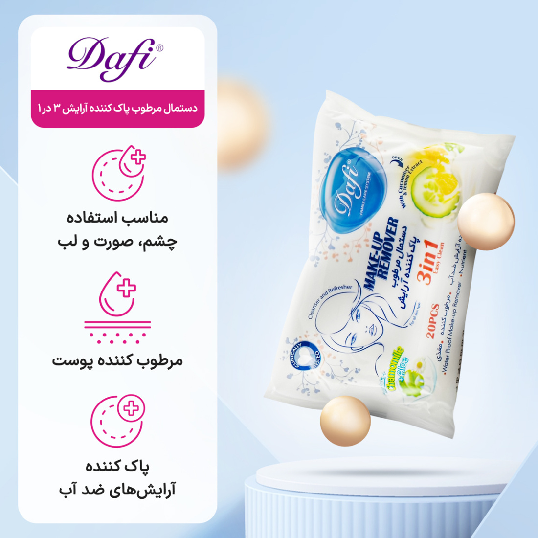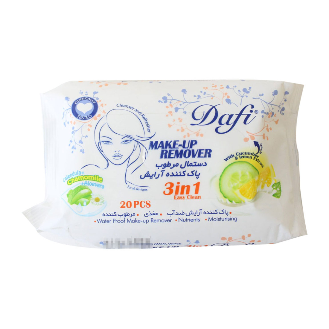 دستمال مرطوب پاک کننده آرایش 3 در 1 دافیDafi 3in1 Make Up Remover Wet Wips 20pcs