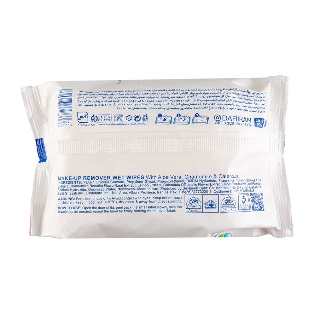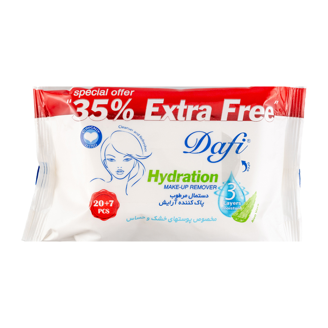 دستمال مرطوب پاک کننده آرایش اکسترا 27 برگی دافیDafi makeup remover Wips