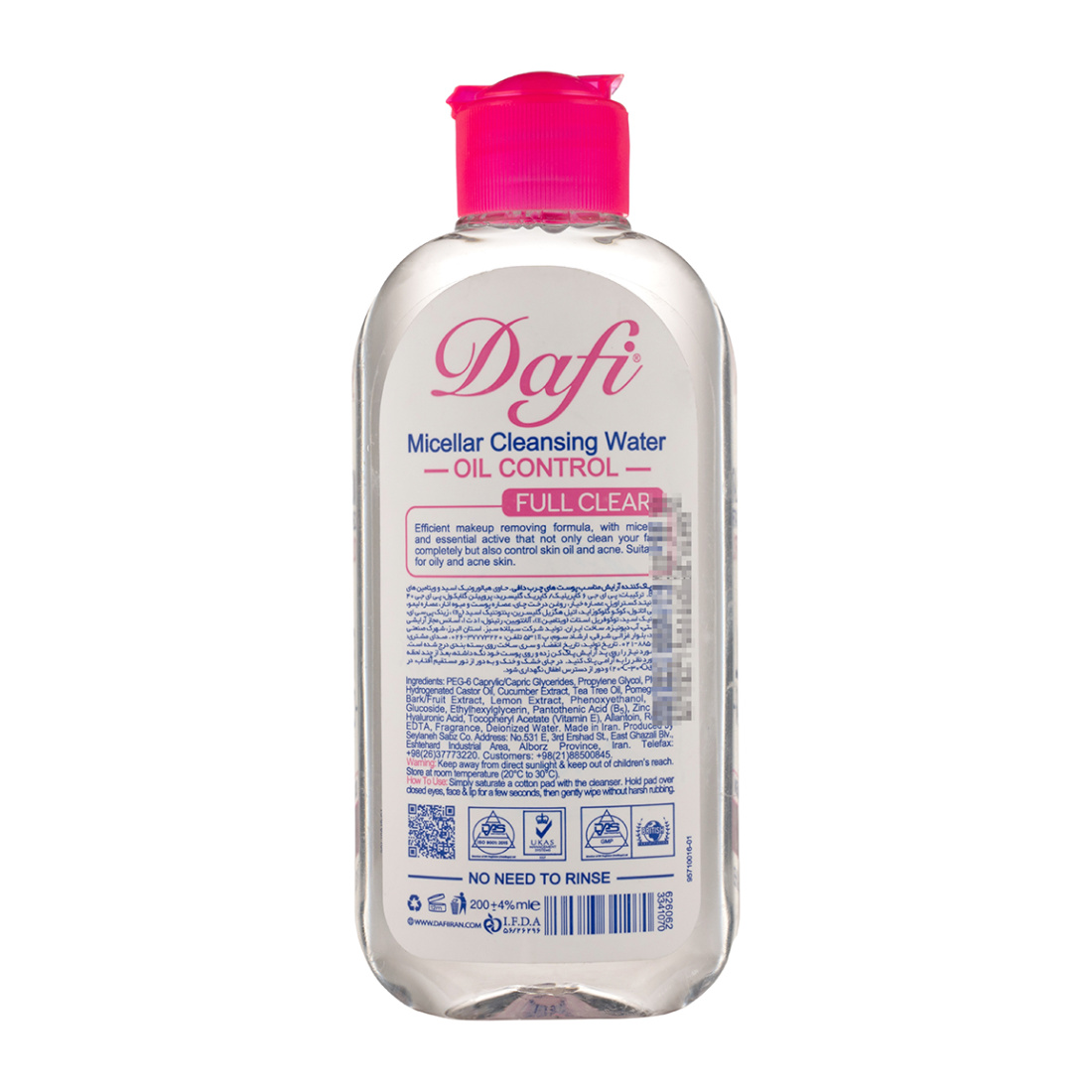 میسلار واتر صورت دافی مدل Oil control مناسب پوست چرب و آکنه دار حجم 200 میلی لیترDafi Micellar Cleansing Water For Oily And Acne Skin 200ml