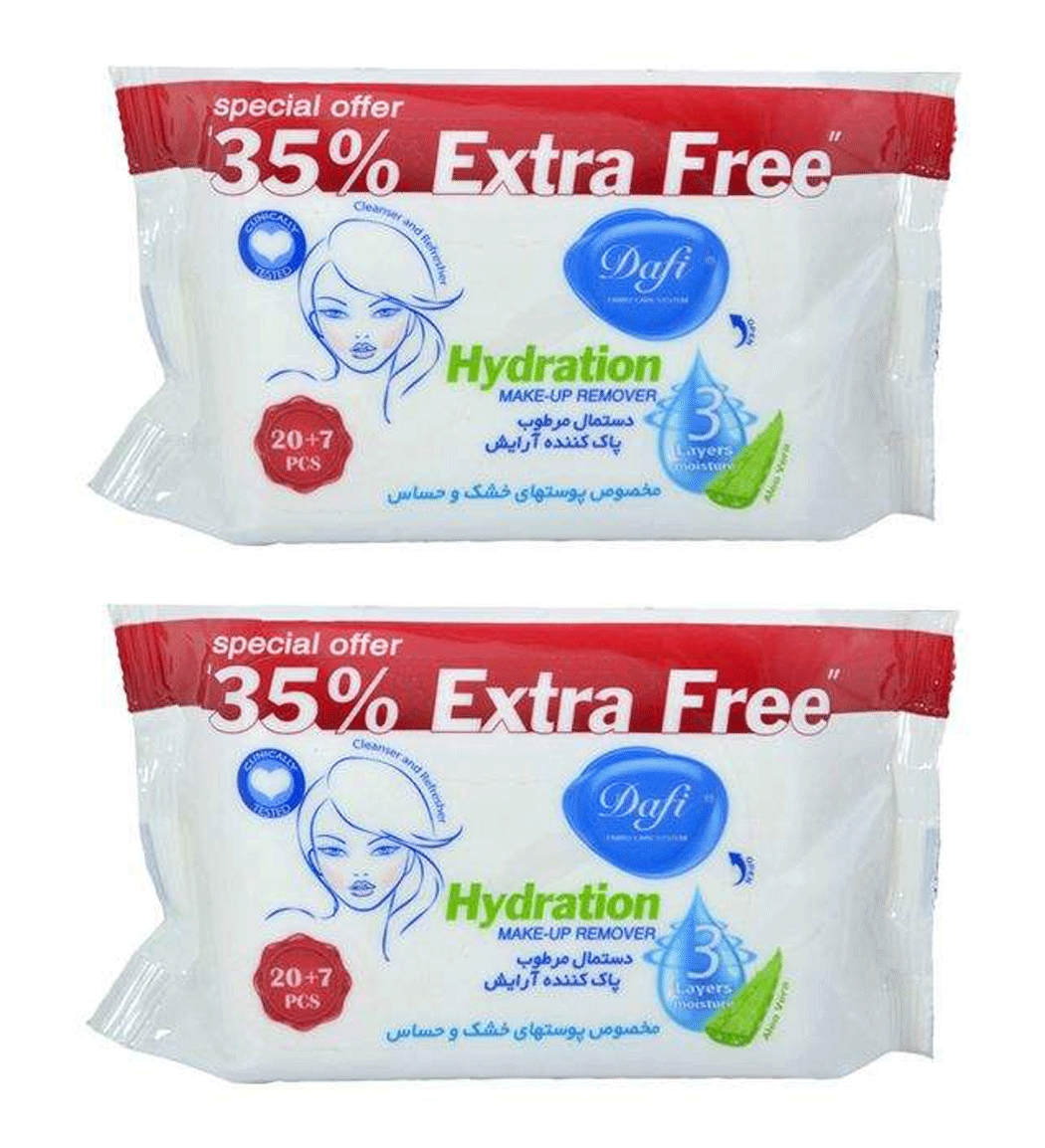 دستمال مرطوب دافی مدل Hydration 01 مجموعه 2 عددی، پاککنندهای ملایم و آبرسان برای پوستهای خشک و حساس