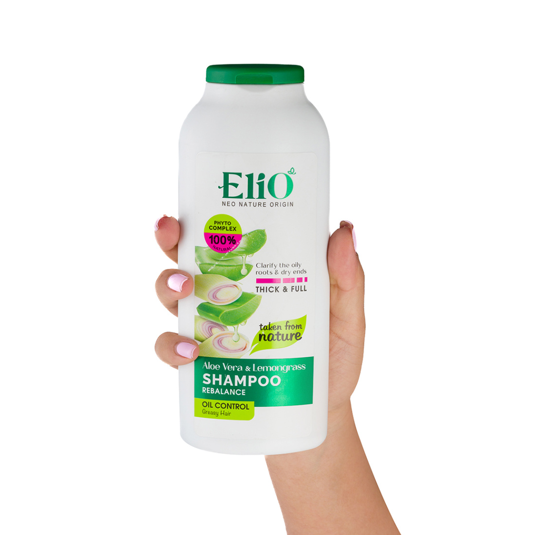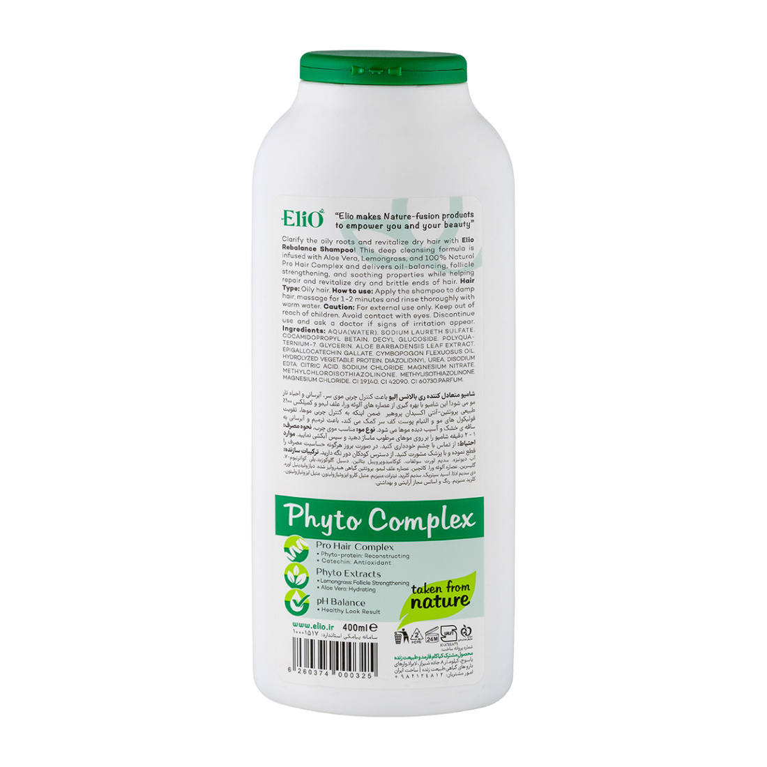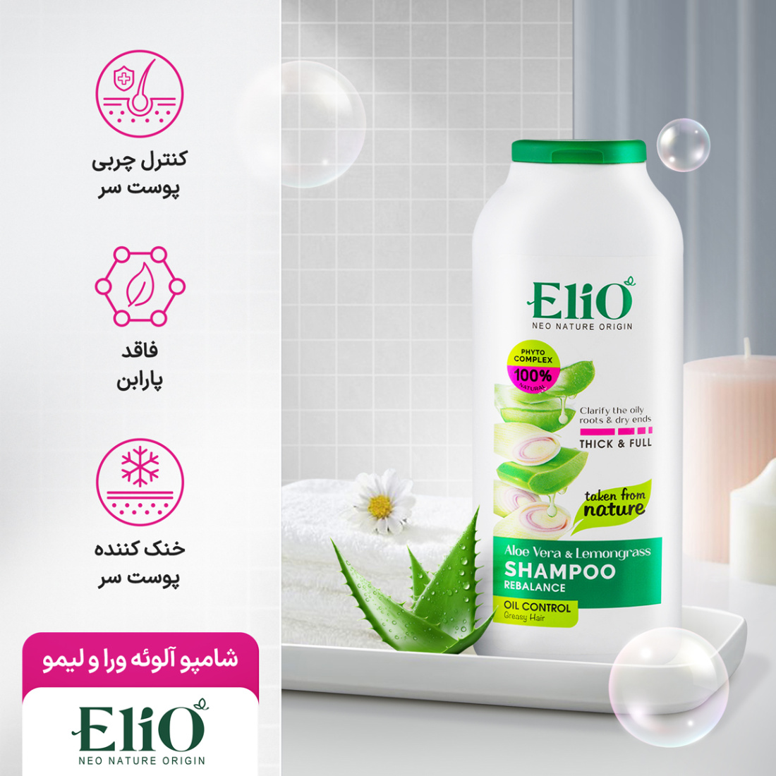 شامپو اِلیو حاوی آلوئه ورا و لیمو مناسب مو چرب حجم 400 میلی لیترElio Aloe Vera And Lemongrass Rebalance Shampoo 400 ml
