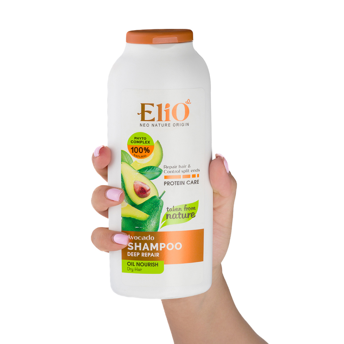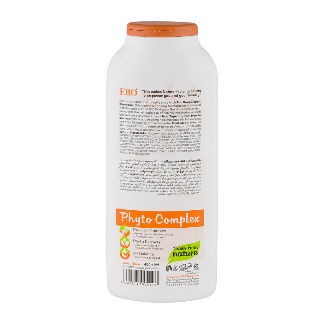 شامپو ترمیم کننده مو خشک آووکادو حجم 400 میلی لیتر اِلیوElio Avocado Deep Repair Shampoo 400 ml