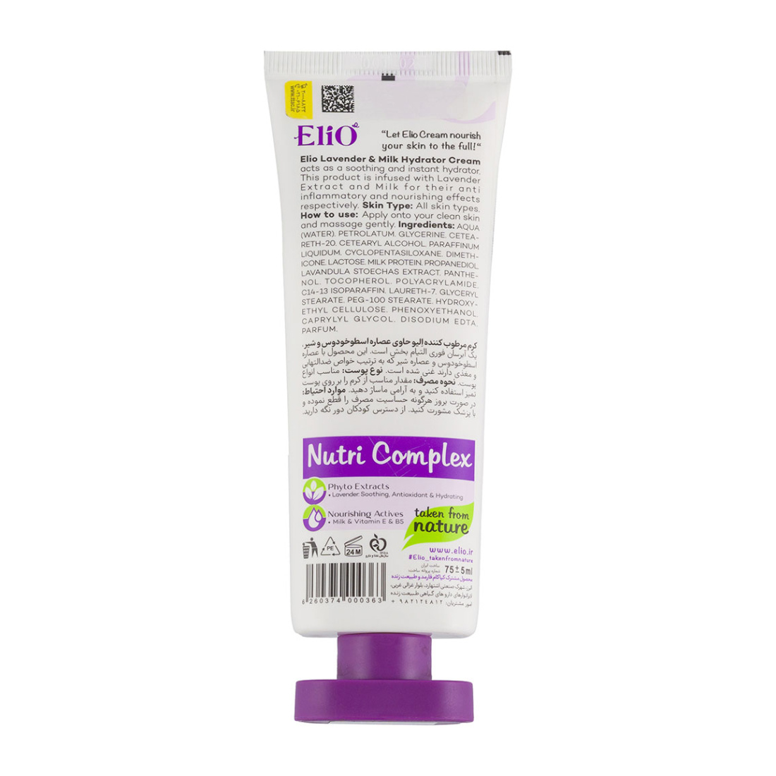 کرم مرطوب کننده اِلیو حاوی اسطوخودوس و شیر حجم 75 میلی لیترElio Lavender And Milk Skin Hydrator Cream 75 ml