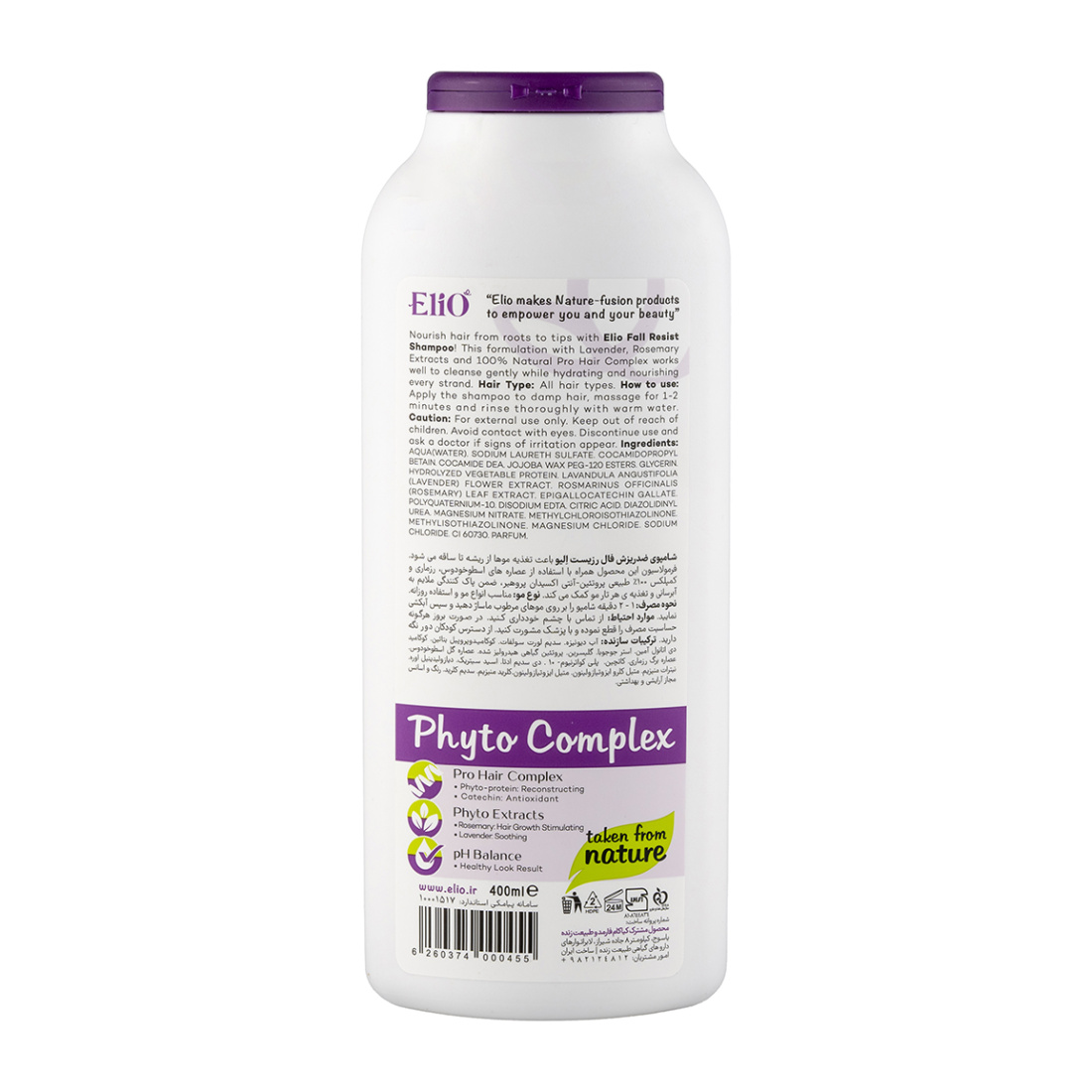 مشخصات کلیElio Lavender And Rosemary Fall Resist Shampoo 400 ml