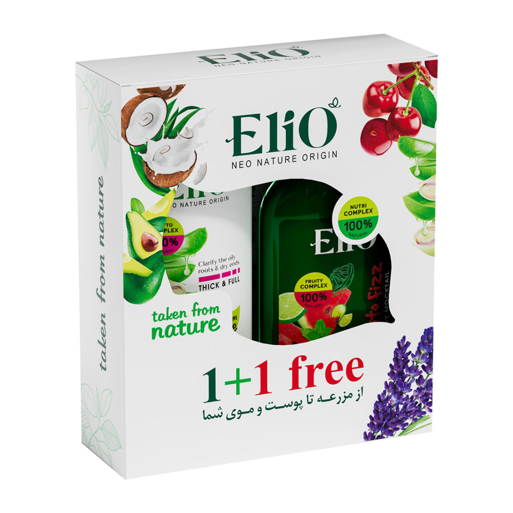 پک دو عددی اِلیو شامپو مو چرب بالانس کننده لمون گرس و شامپو بدن موهیتو سبز رایگان Elio Shampoo Rebalance Grasslemon And Body Shampoo Mojito Green