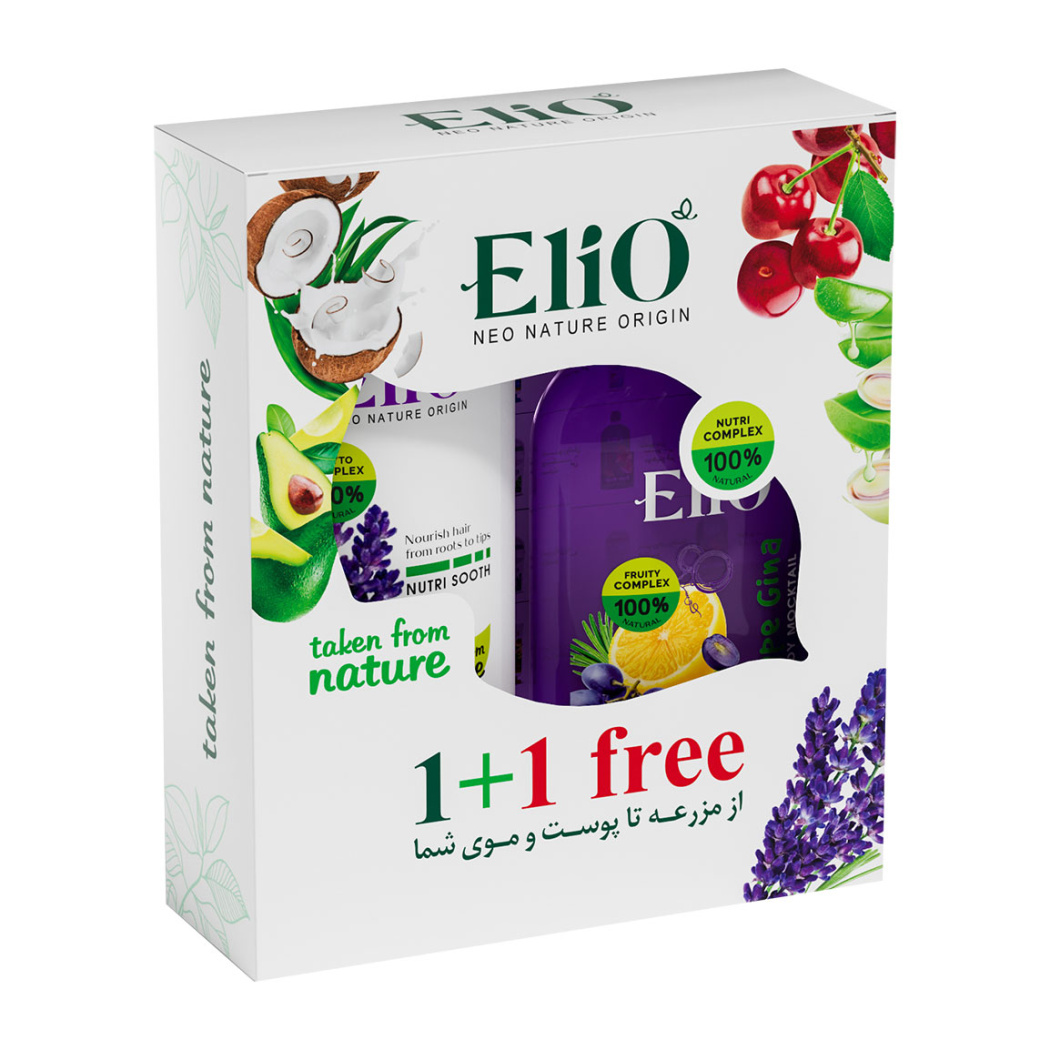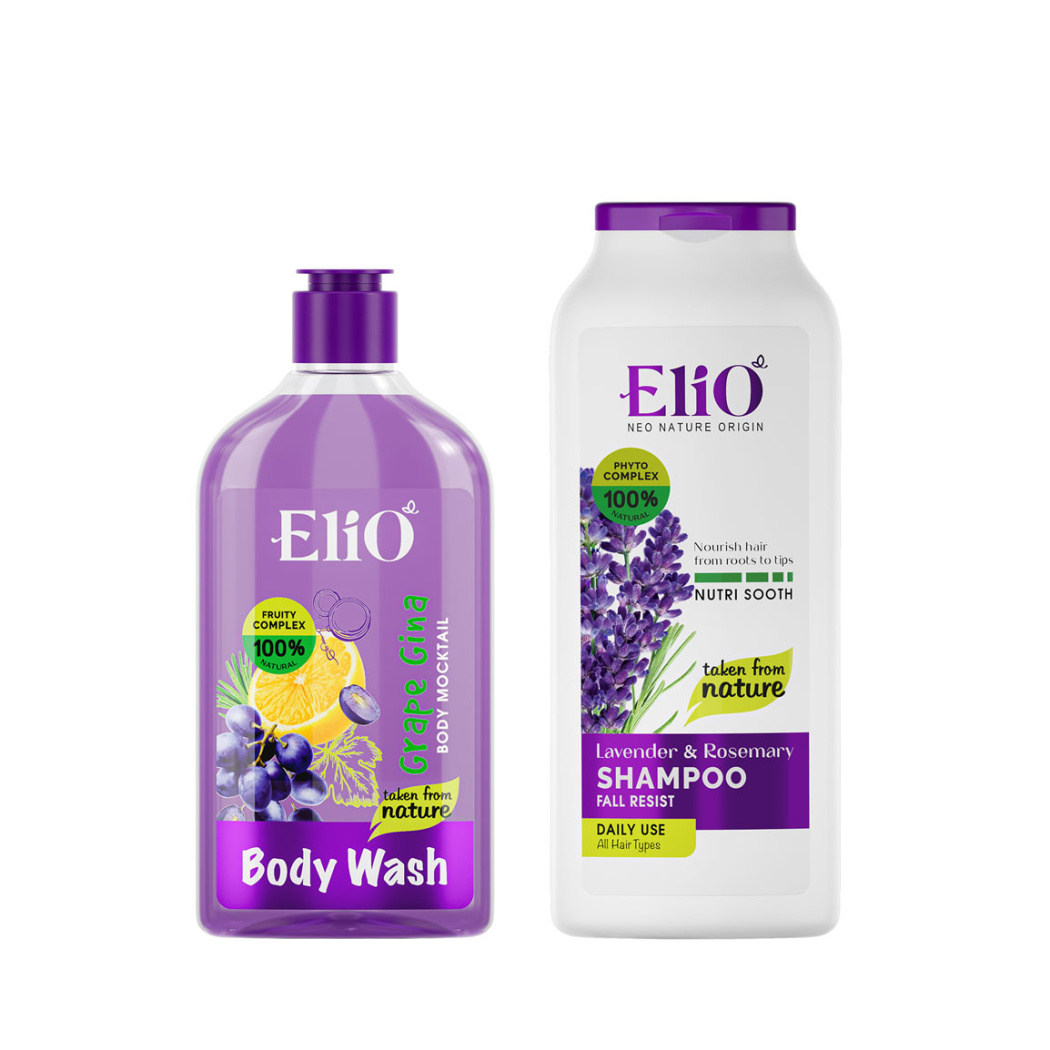 پک دو عددی اِلیو شامپو ضد ریزش لوندر و شامپو بدن گریپ جینا رایگان Elio Shampoo Resistfall Levender And Body Shampoo Greep Gina Purple