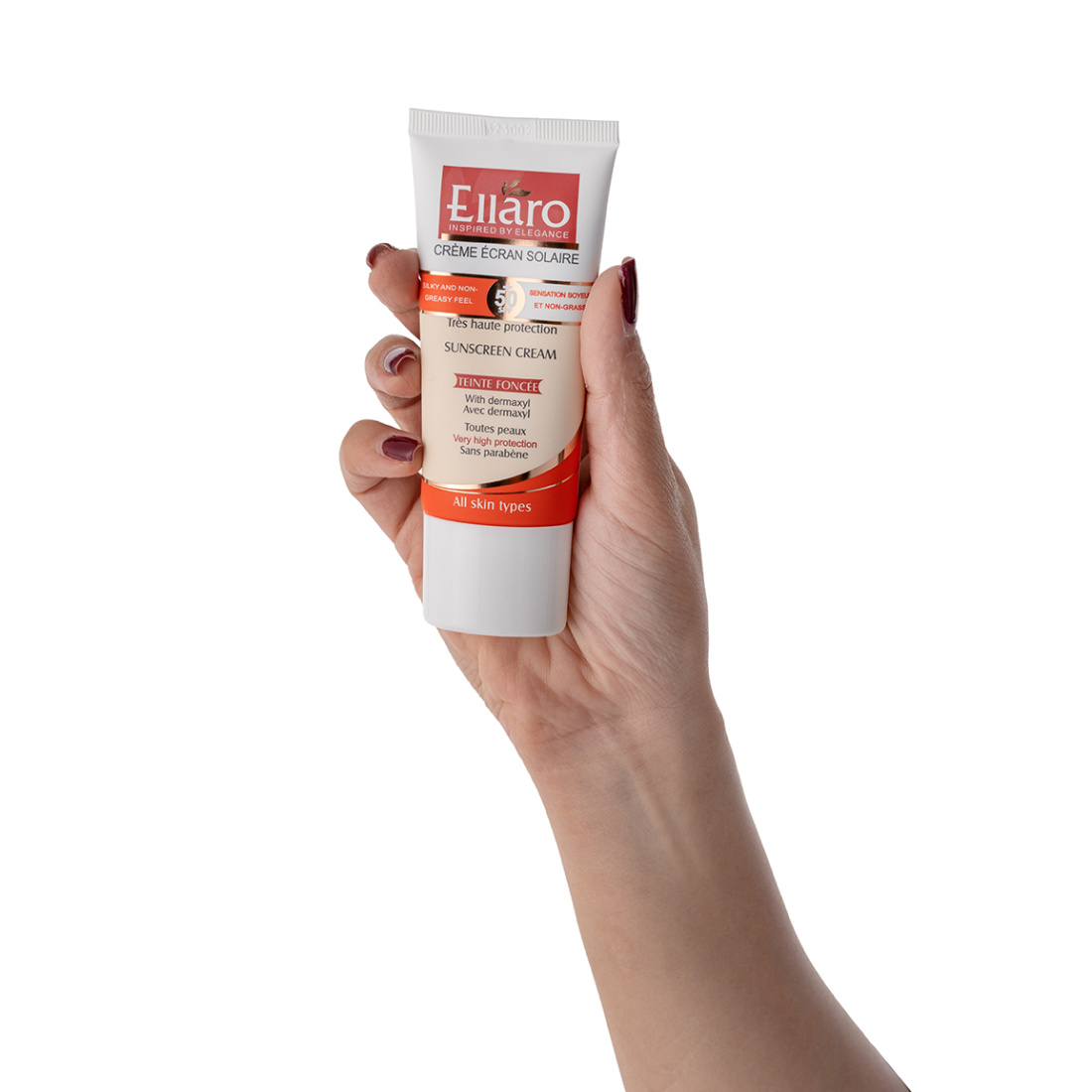 کرم ضد آفتاب رنگی مناسب انواع پوست حاوی اس پی اف 50 الاروEllaro SunCream SPF50 Tinted