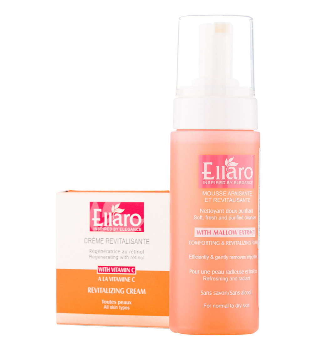 پک کرم ویتامین C و فوم شستشوی صورت مناسب پوست نرمال تا خشک الاروEllaro Vitamin C Cream And Face Wash Foam Suitable For Normal To Dry Skin Pack