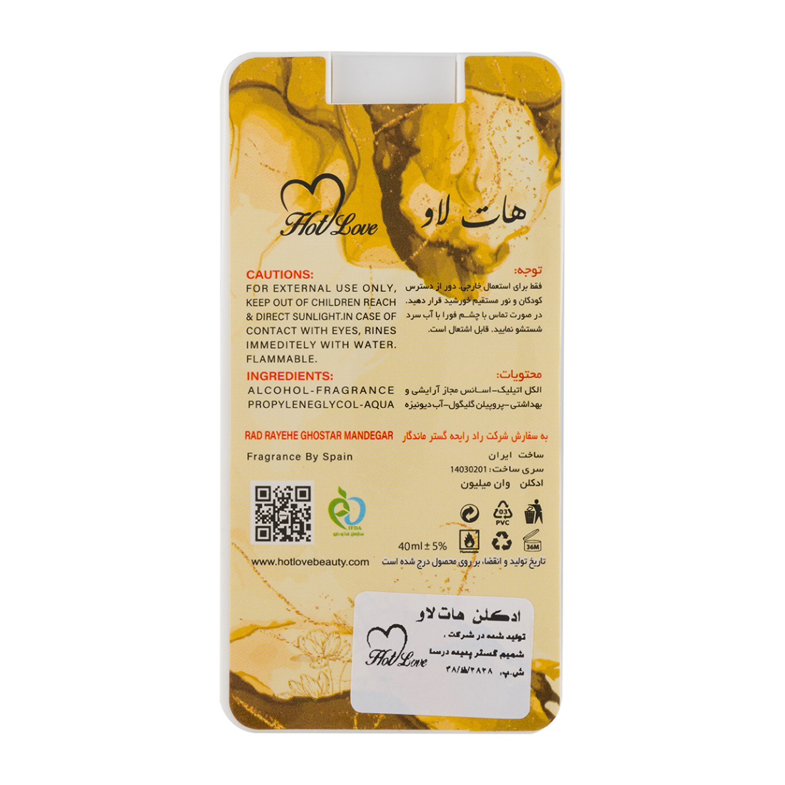 عطر مردانه هات لاو (Hot Love) محصولی بی‌نظیر از ایران است که با ترکیبی منحصر به فرد از رایحه‌های میوه‌ای، چوبی، مرکباتی و گلی، تجربه‌ای خاص و ماندگار را برای آقایان به ارمغان می‌آورد. این عطر با حجم 40 میلی‌لیتر و غلظت مناسب، انتخابی ایده‌آل برای استفاده روزمره در فصول سرد سال یعنی پاییز و زمستان محسوب می‌شود. طراحی رایحه آن به گونه‌ای است که حس تازگی و انرژی را با نت‌های آغازین مرکباتی به همراه نعناع خنک و ماندارین خونی ترکیب می‌کند و به تدریج با نت‌های میانی تند و گل رز و دارچین، عمق و گرمای خاصی به عطر می‌بخشد.