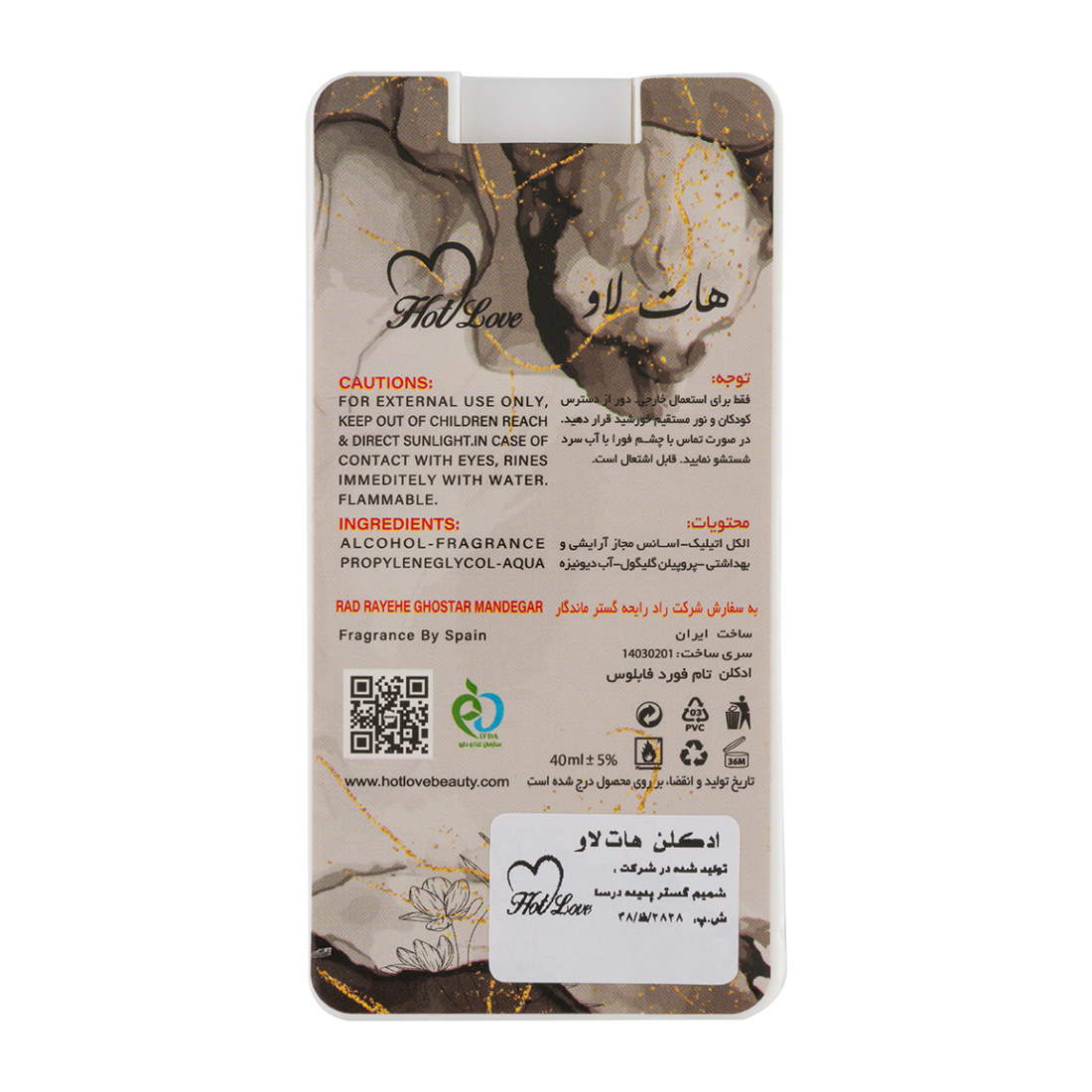 عطر مردانه هات لاو (Hot Love) با حجم 40 میلی‌لیتر، یک انتخاب بی‌نظیر برای آقایانی است که به دنبال رایحه‌ای تلخ، ماندگار و با پراکندگی متوسط می‌باشند. این عطر ایرانی با ترکیبی منحصر به فرد از نت‌های گیاهان معطر، وانیل، چوب، گل، میوه و چرم، تجربه‌ای خاص و متفاوت را برای شما رقم می‌زند که به‌ویژه در فصل‌های پاییز و زمستان حس گرما و انرژی را به شما هدیه می‌کند.