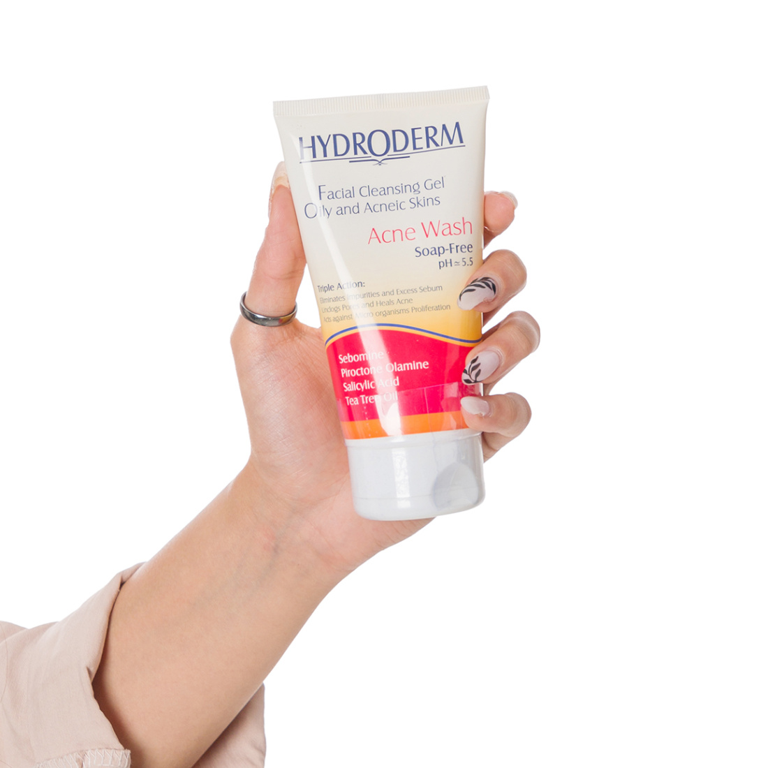 ژل شستشوی صورت هیدرودرم برای پوست چرب مدل Acne Wash حجم 150 میلی لیترHydroderm Oily Skin Wash skin Gel 150ml