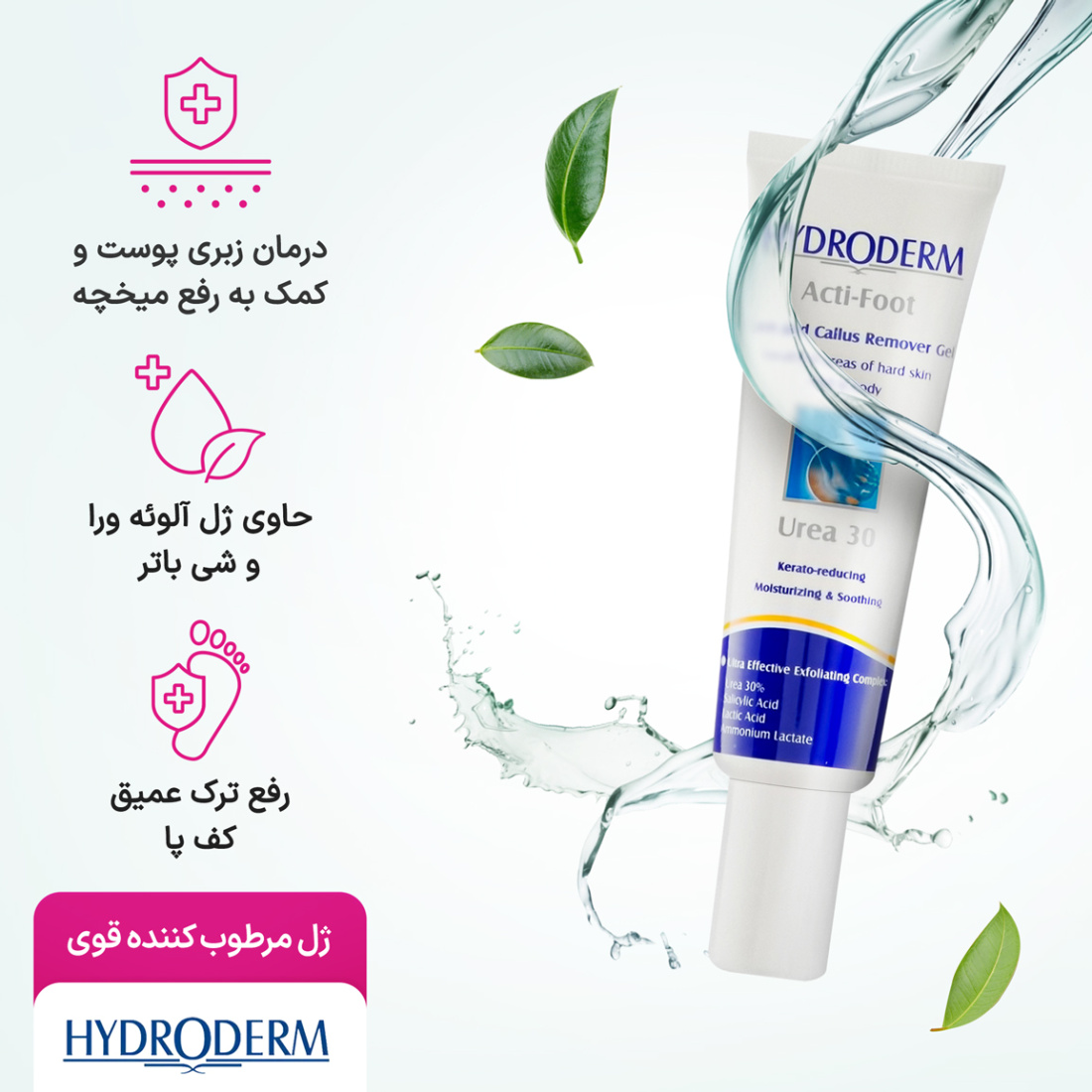 ژل مرطوب کننده قوی حاوی 30 درصد اوره 30میل هیدرودرمHydroderm Acti Foot