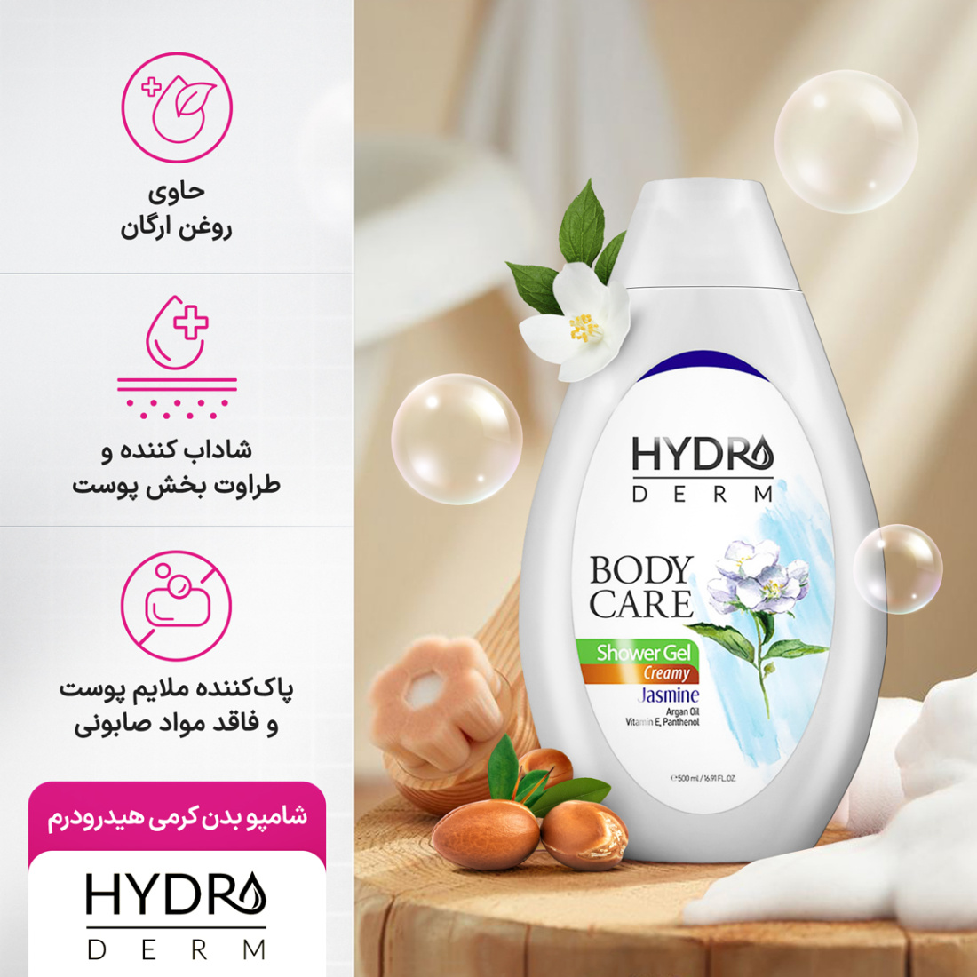شامپو بدن کرمی هیدرودرم با رایحه یاس و روغن آرگان حجم 500 میلی لیترHydroderm Creamy Body Wash Jasmine And Argan 500 ml