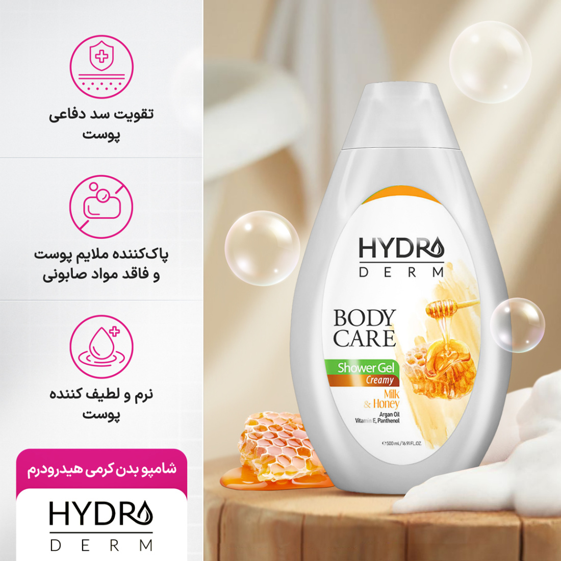 شامپو بدن کرمی با رایحه شیر و عسل حجم 500 میل هیدرودرمHydroderm Creamy Body Wash Milk And Honey 500 ml