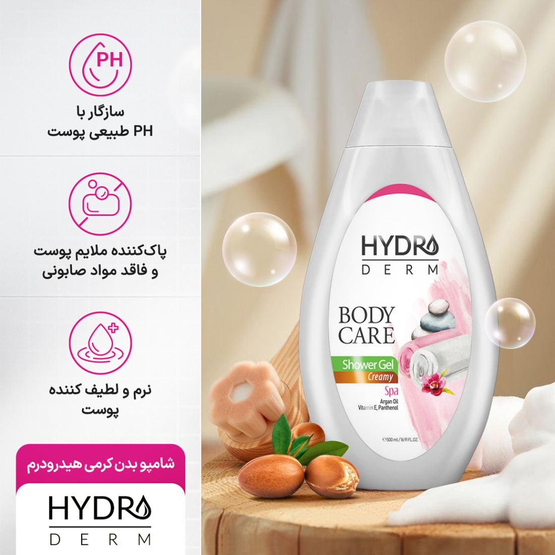 شامپو بدن کرمی هیدرودرم با رایحه اسپا و روغن آرگان حجم 500 میلی لیترHydroderm Creamy Body Wash Spa And Argan Oil 500 ml